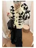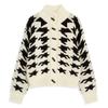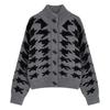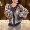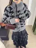 Cardigan Feminino Casual Solto Retrô de Tricô Grosso Bloco de Cores Pied de Poule Novo Outono/Inverno 2025 Casaco Suéter de Manga Longa