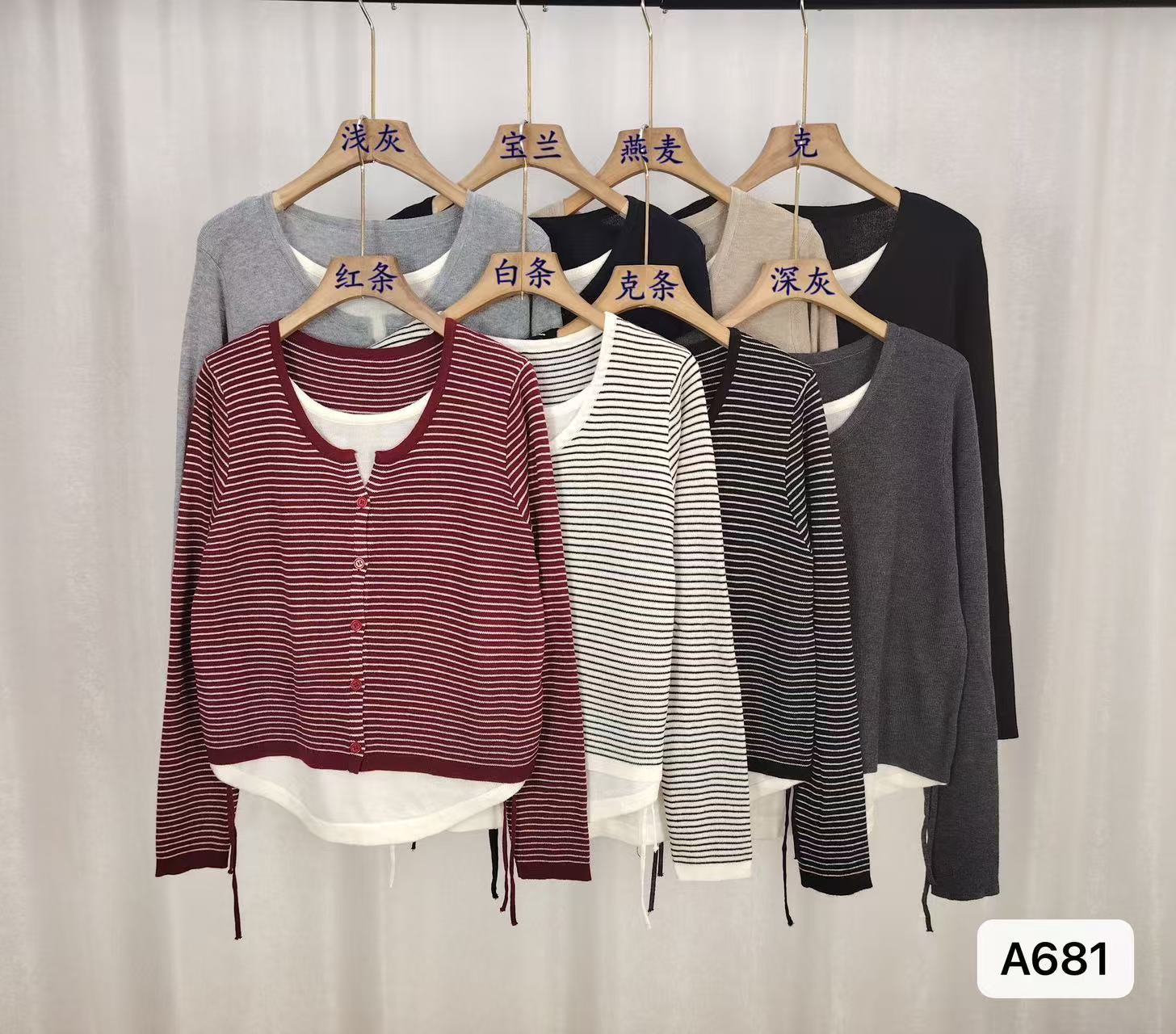 Light gray A681, Royal blue A681, Oats A681, Black A681, Black bar A681, IOU A681, Red Stripe A681, Dark Gray A681