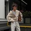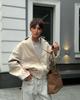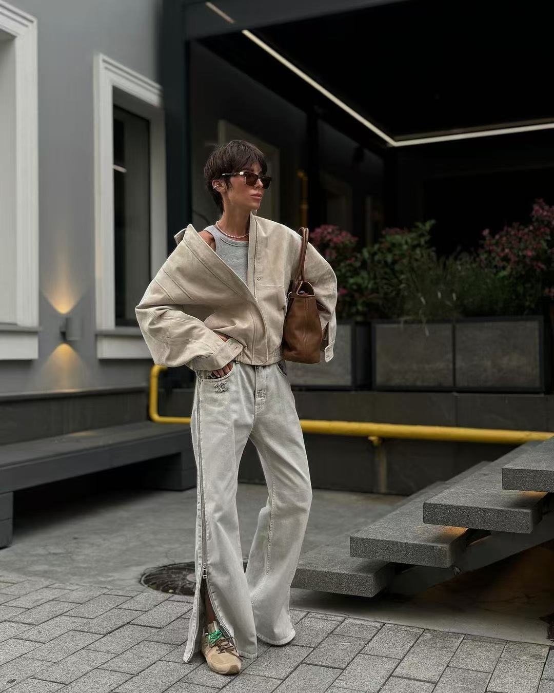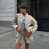 Atacado Transfronteiriço Estilo Europeu e Americano Moda Outono e Inverno 2025 Jaqueta Aviador Solta com Textura de Camurça e Lapela para Mulheres A6