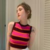 Pure Desire Style Listrado Malha Colete Sling Feminino Hong Kong Estilo Chique Novo Estilo Interior Vestindo Exterior Vestindo Base Curta Top para o Verão
