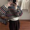 Suéter listrado de malha com gola POLO estilo preguiçoso para mulheres outono nova moda solto emagrecedor comprimento médio suéter casual feminino