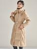0818-147 Casaco Puffer Longo Grosso de Inverno 90% Penas Jaqueta Feminina com Capuz