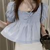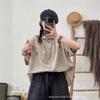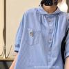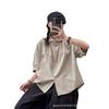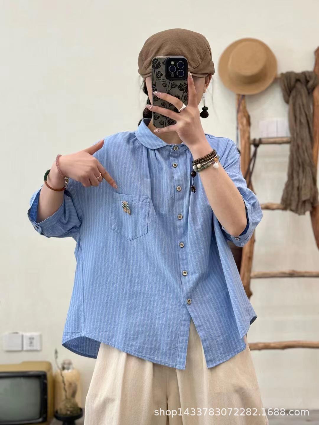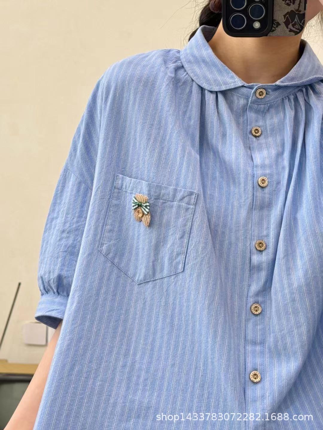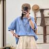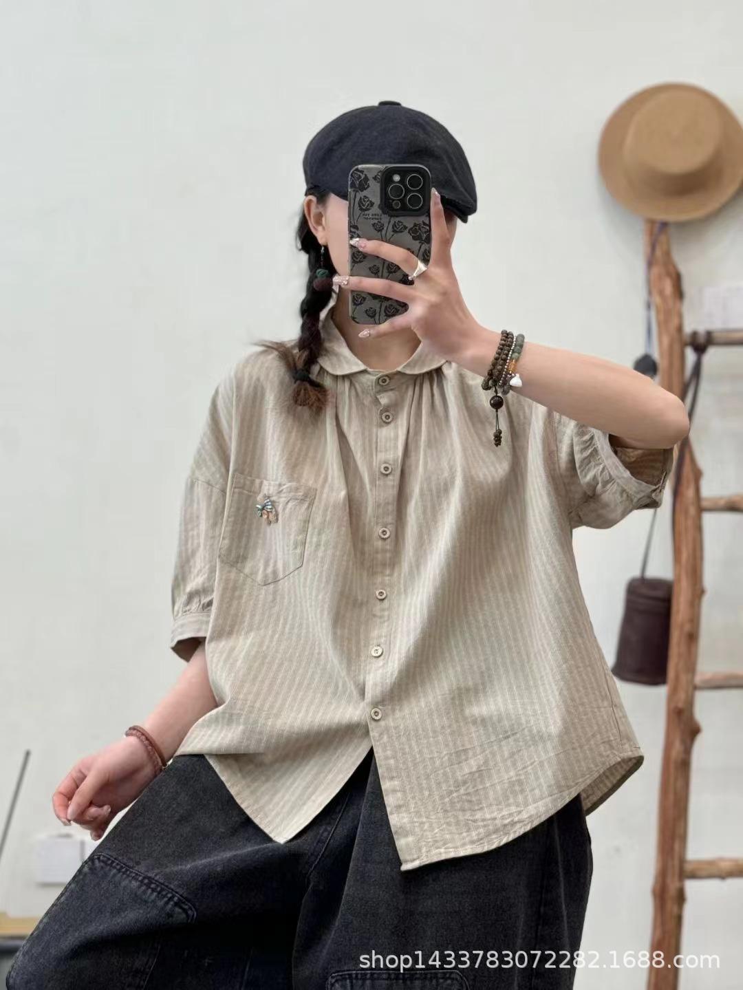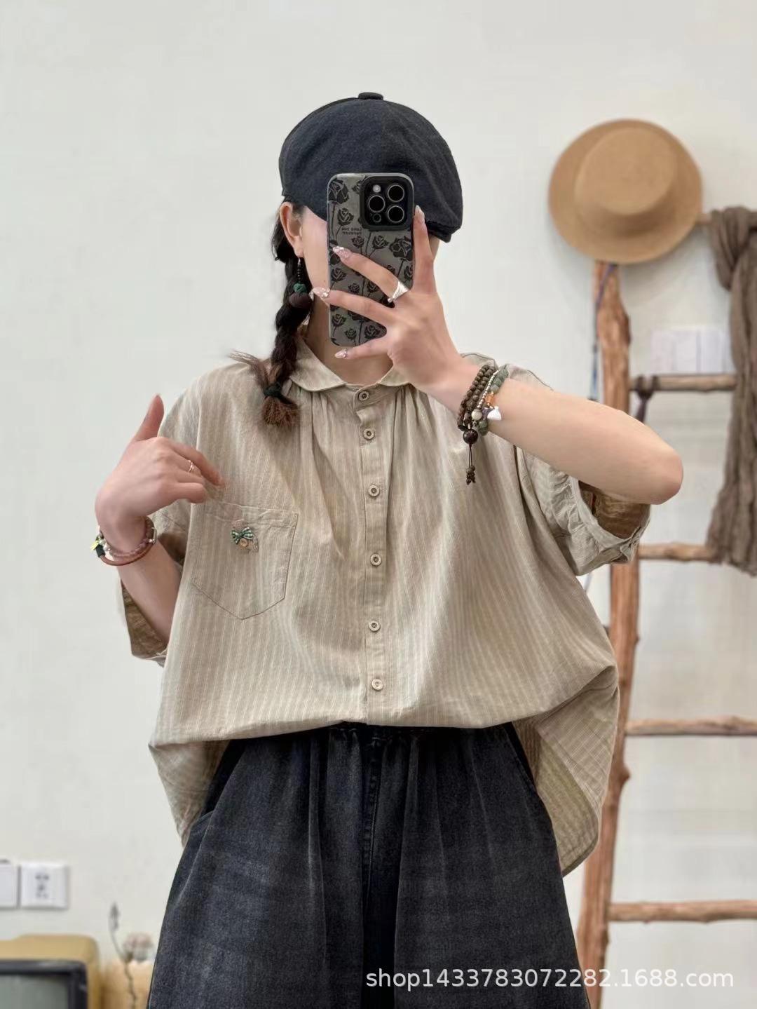 2024 Nova Camisa Listrada de Manga Curta com Lapela Slim de Verão para Mulheres, Top Versátil Casual Elegante Solto