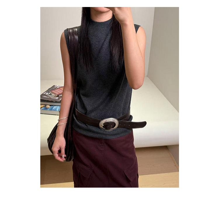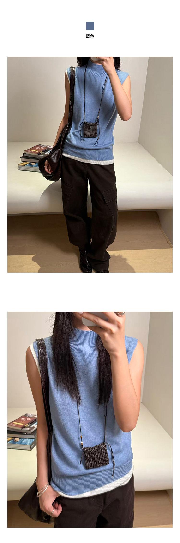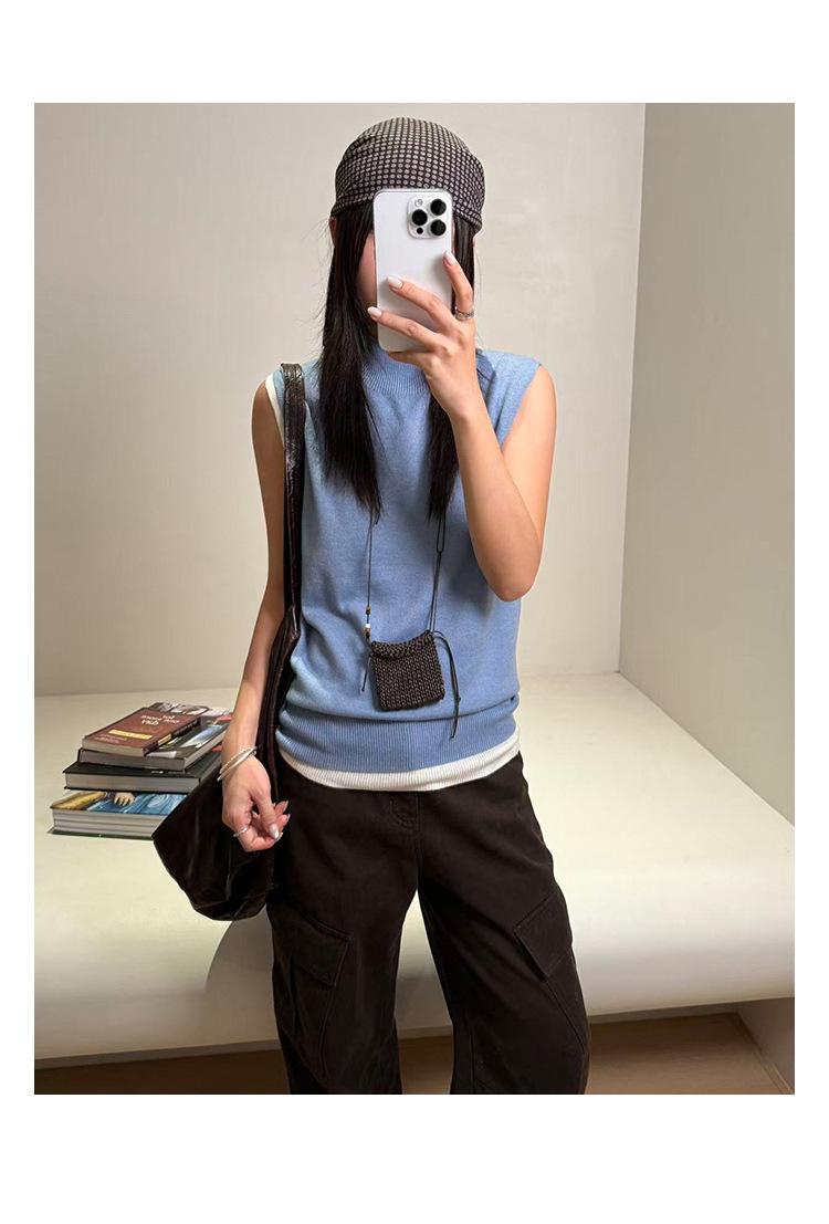 Mulan Retro Colete Tricotado Gola Alta Mulher 2025 Treze Linhas Outono Novo Top Versátil Amigo da Pele 57913