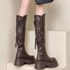 Mas Botas de Cano Alto até o Joelho Botas de Salto Baixo 2024 Nova Moda Feminina Solado Grosso Calças Plataforma Botas de Cavaleiro