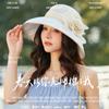 Chapéu de Sol de Aba Larga em Organza Respirável Chapéu de Proteção Solar para Férias em Bali à Beira-Mar Chapéu Balde de Flores Versátil de Verão