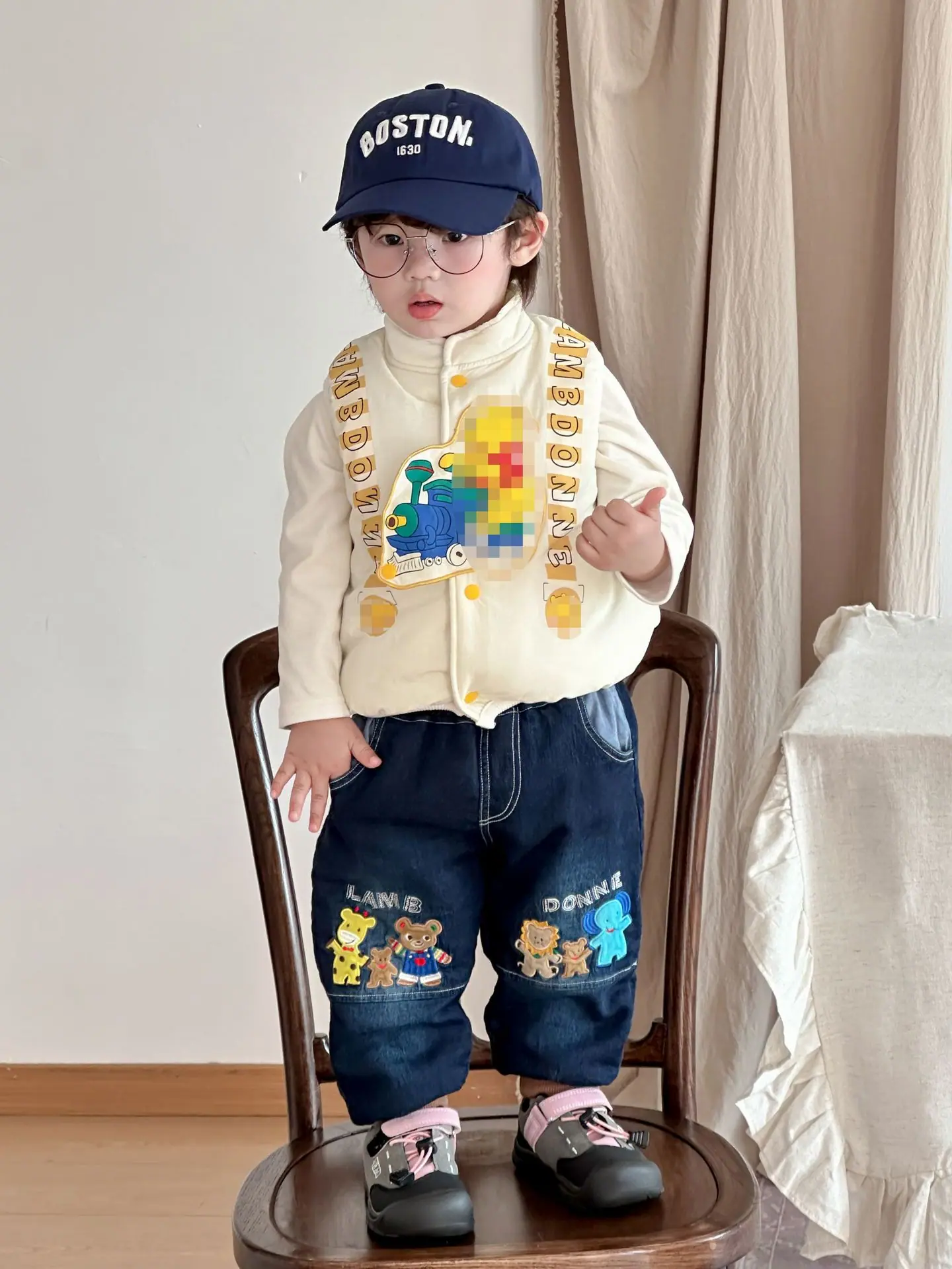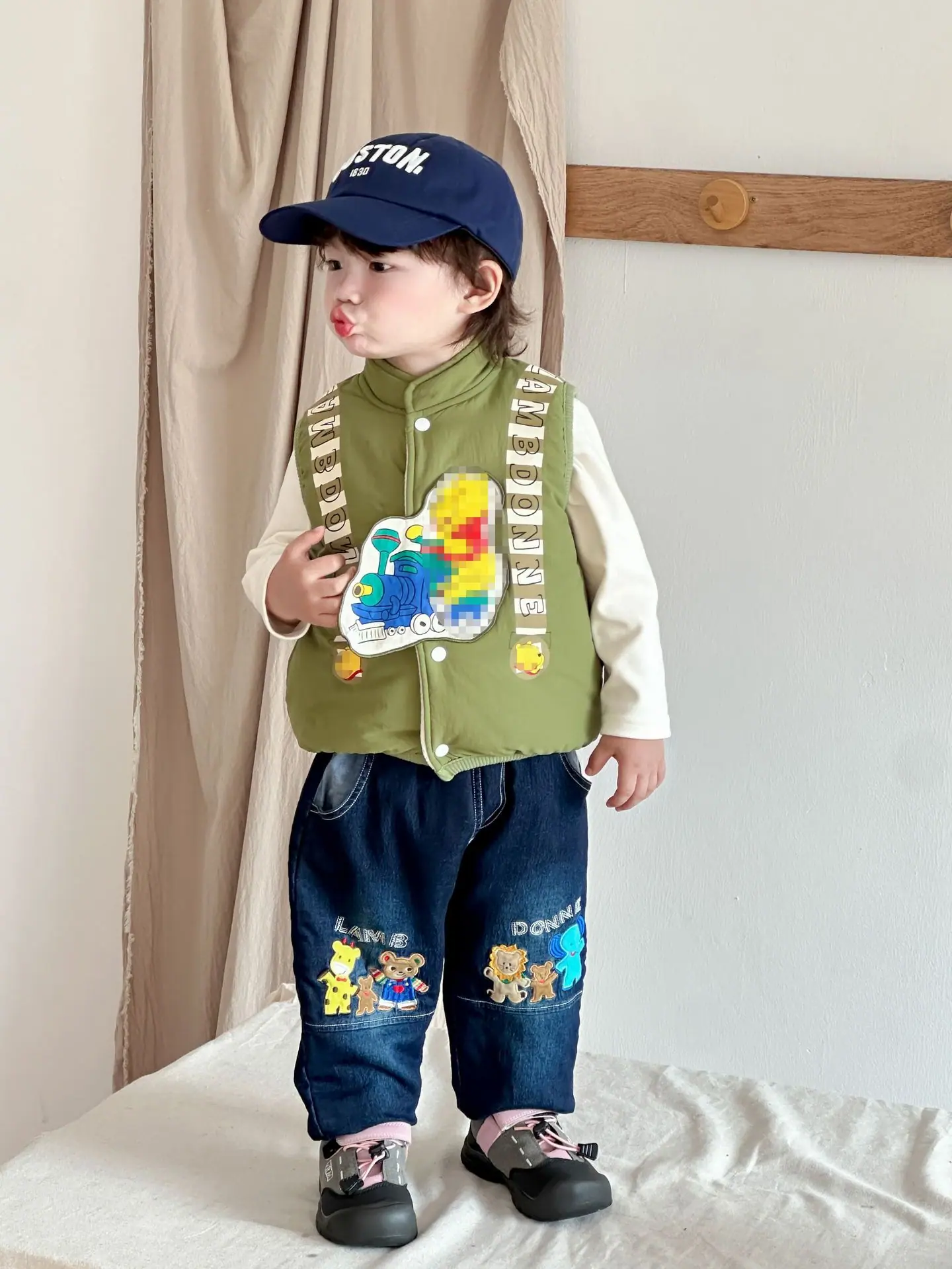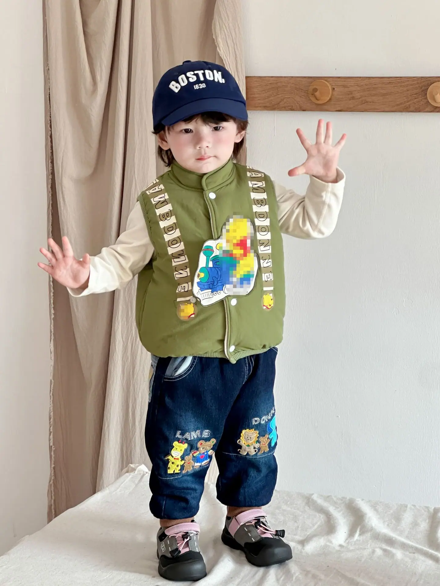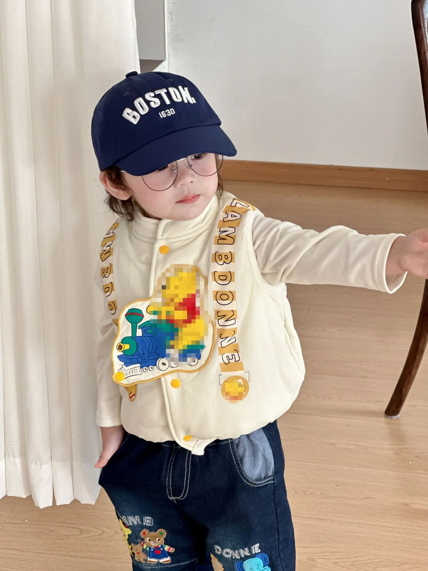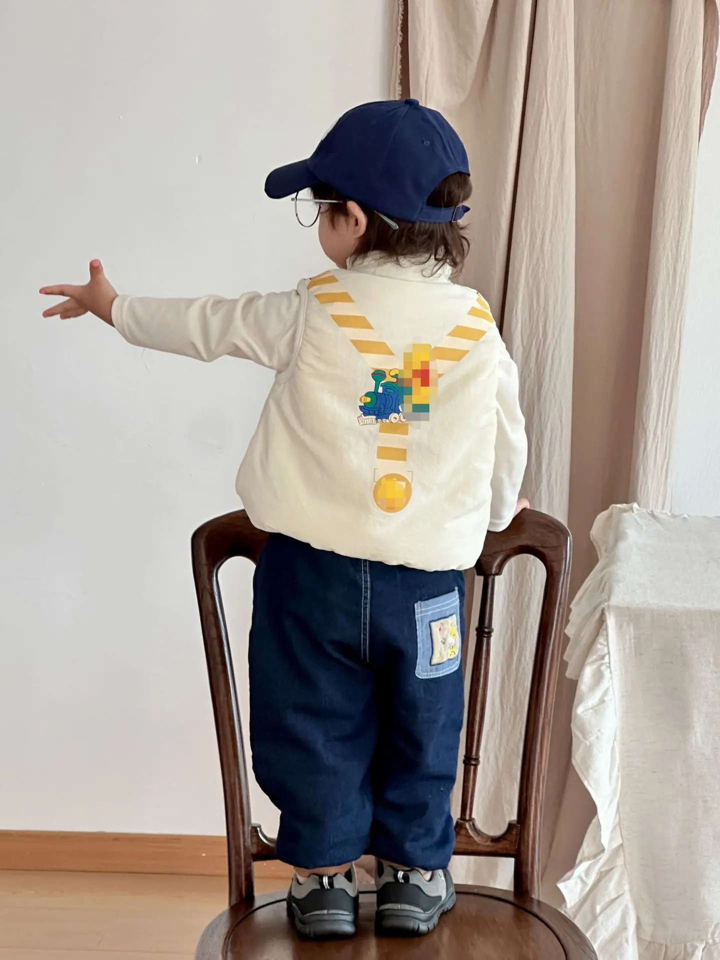 Colete Infantil 2025 Novo Estilo Colete Quente Espesso Infantil Outono Inverno Colete Bebê Forrado com Lã Roupa Infantil Roupa de Outono Atacado