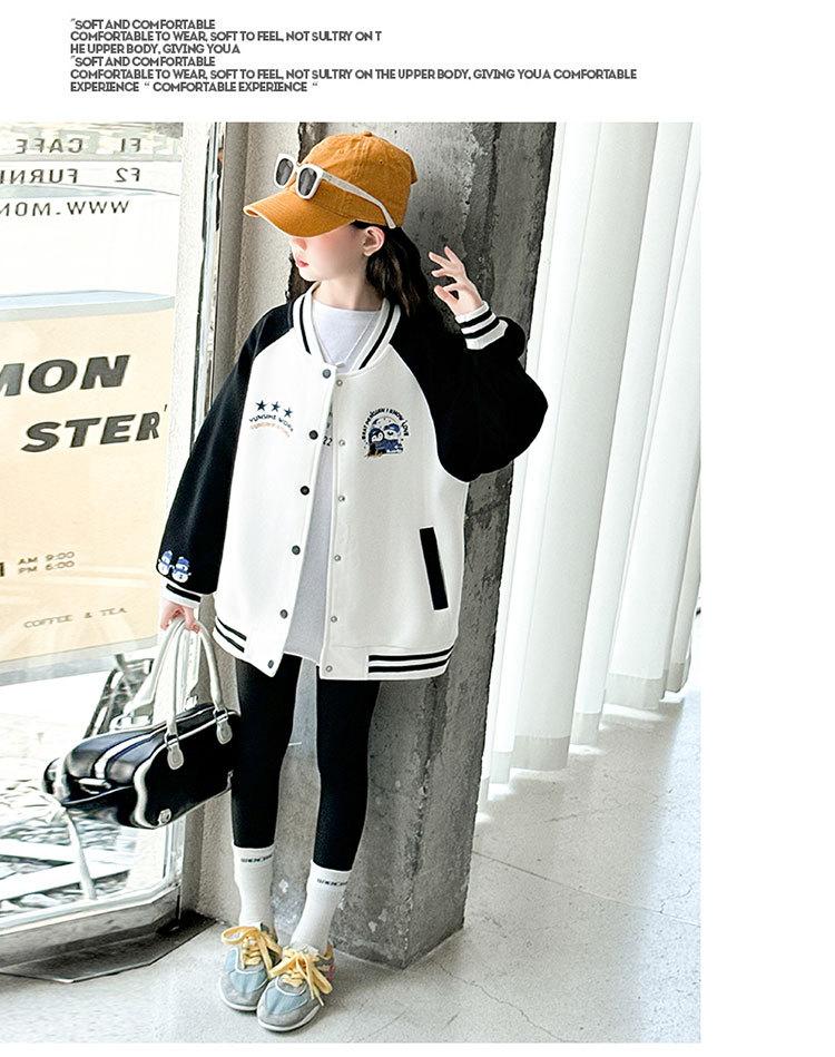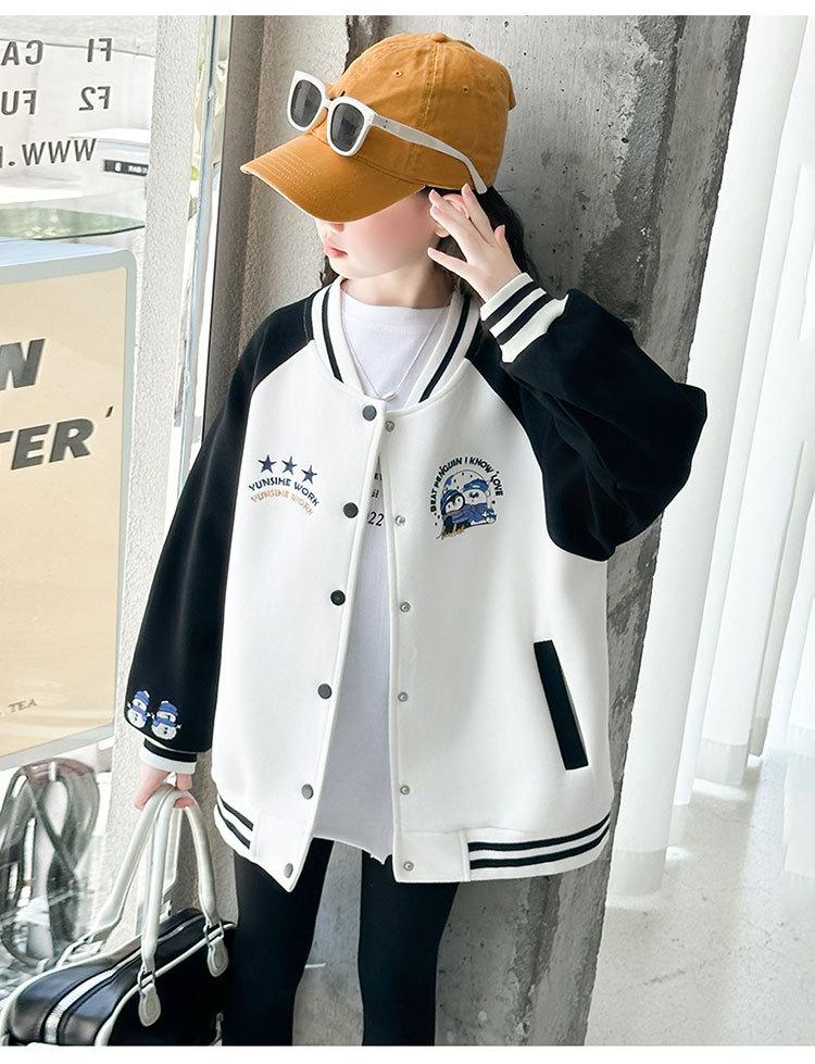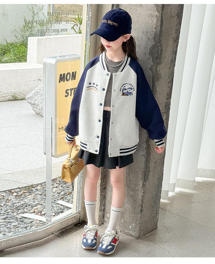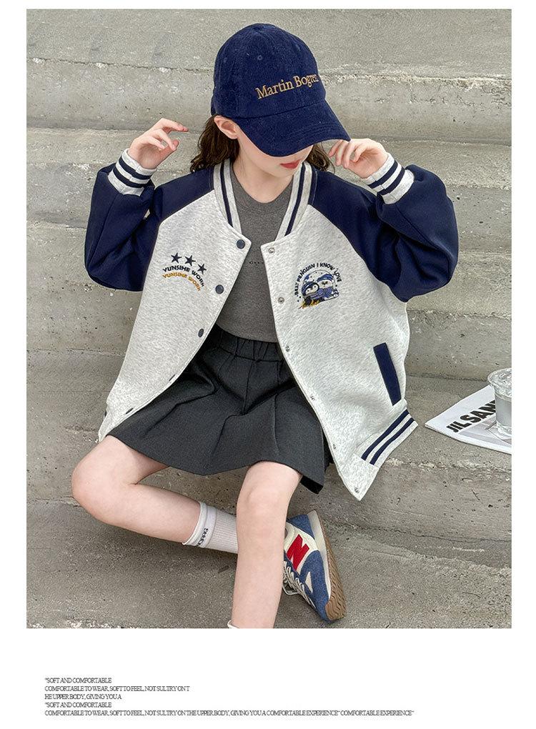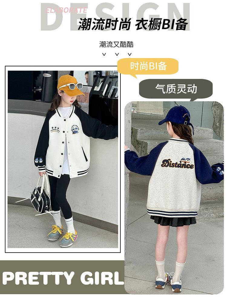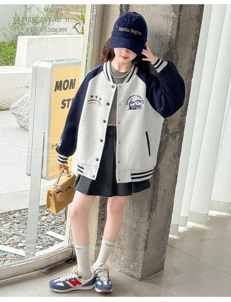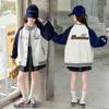 Roupa Exterior de Outono para Meninas 2025 Nova Jaqueta de Beisebol Infantil da Moda para Crianças Médias e Grandes, Bordado, Bloco de Cores, Top de Outono