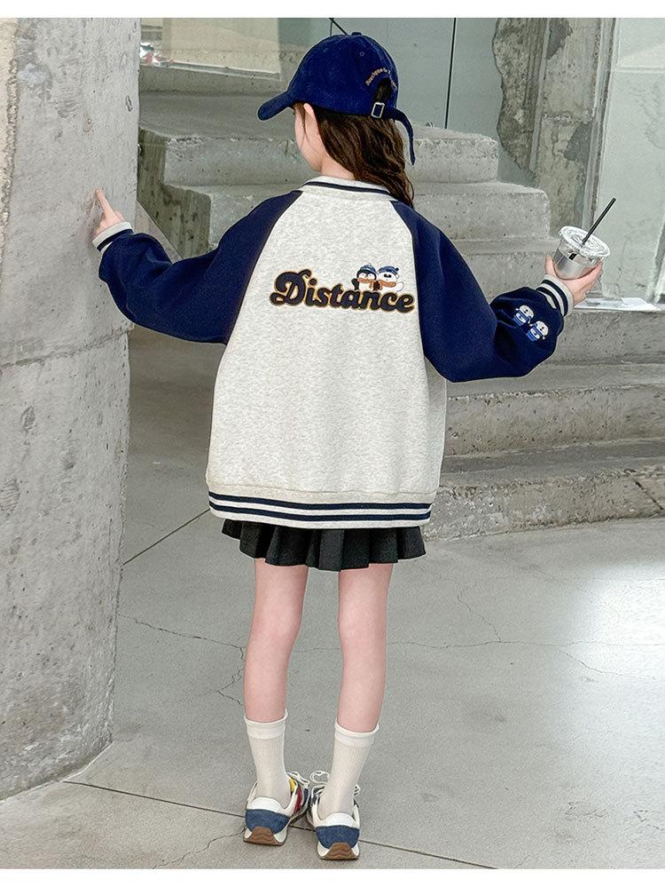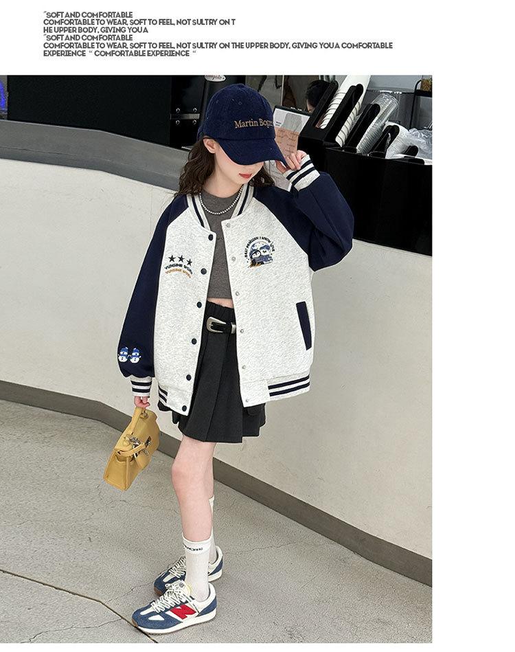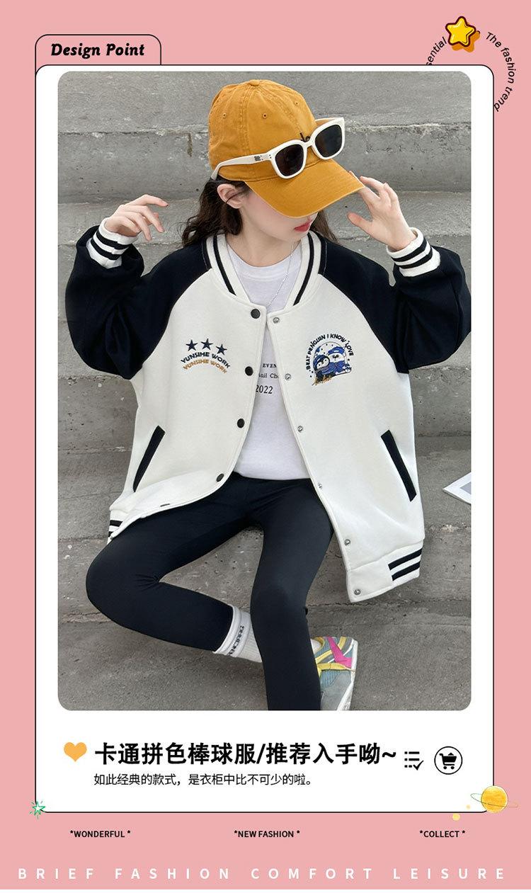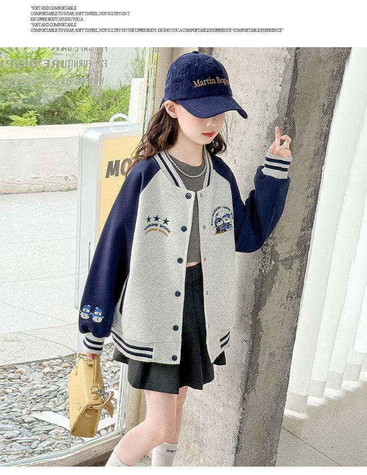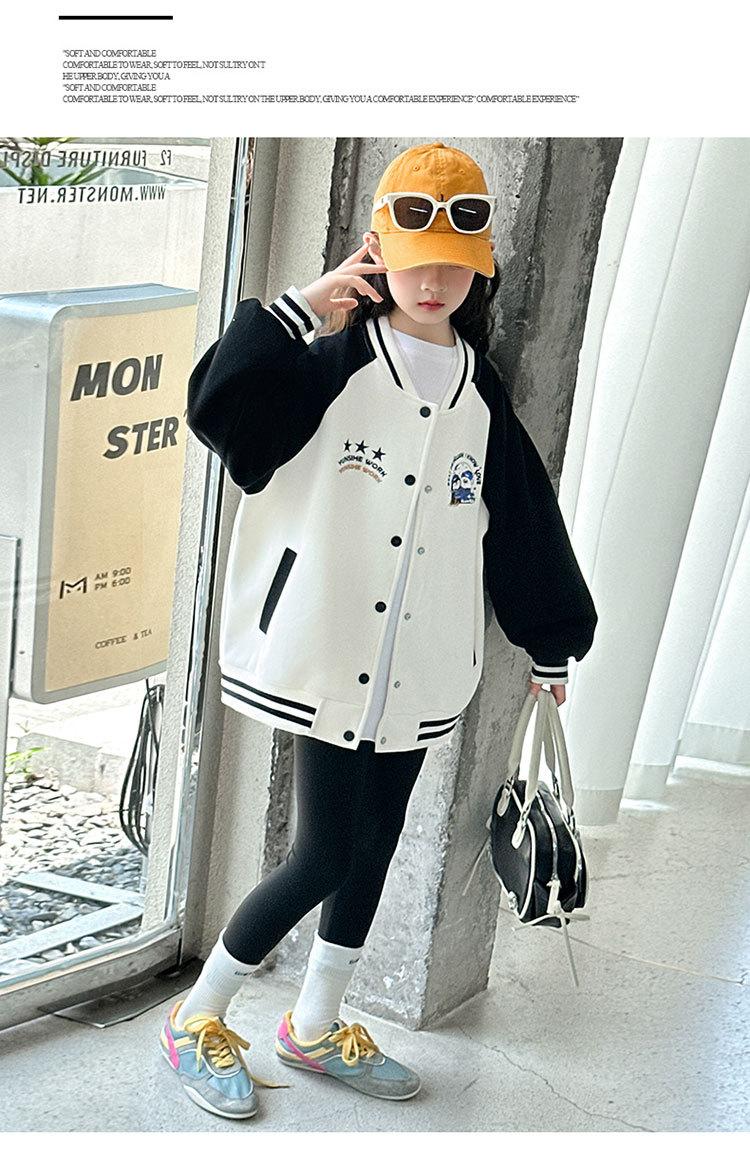 Roupa Exterior de Outono para Meninas 2025 Nova Jaqueta de Beisebol Infantil da Moda para Crianças Médias e Grandes, Bordado, Bloco de Cores, Top de Outono