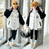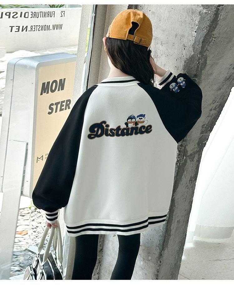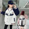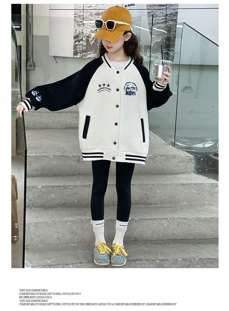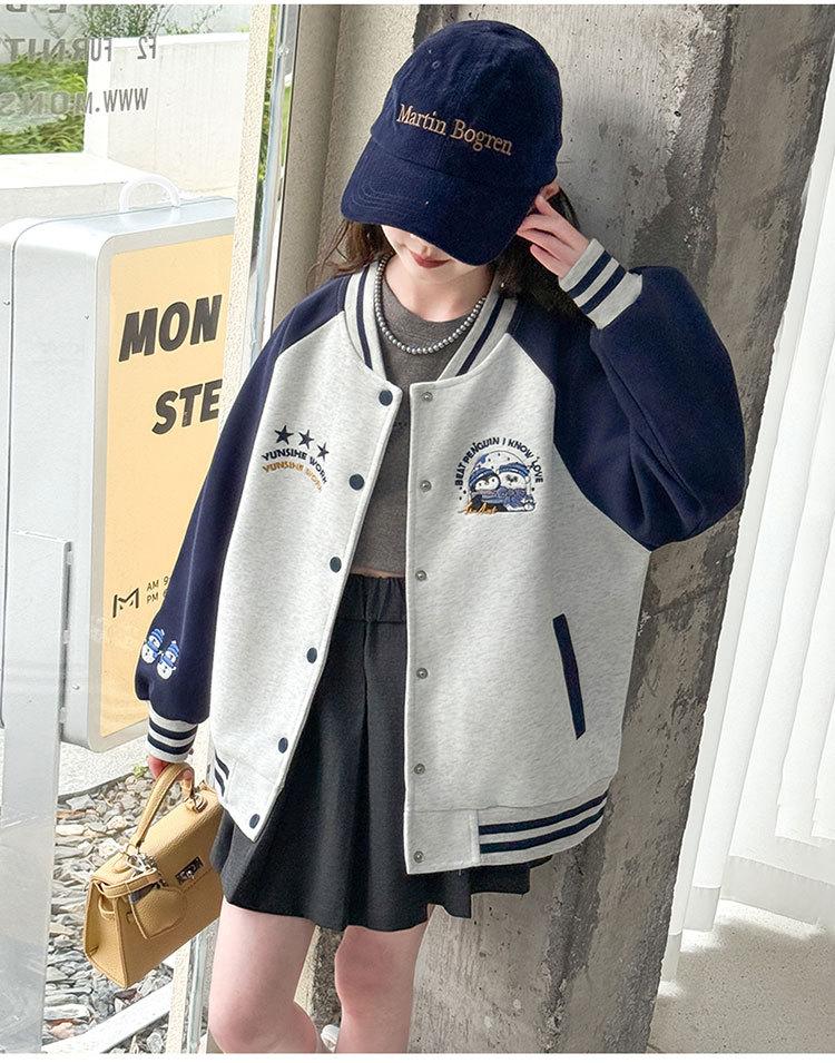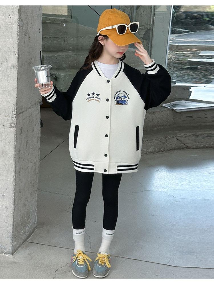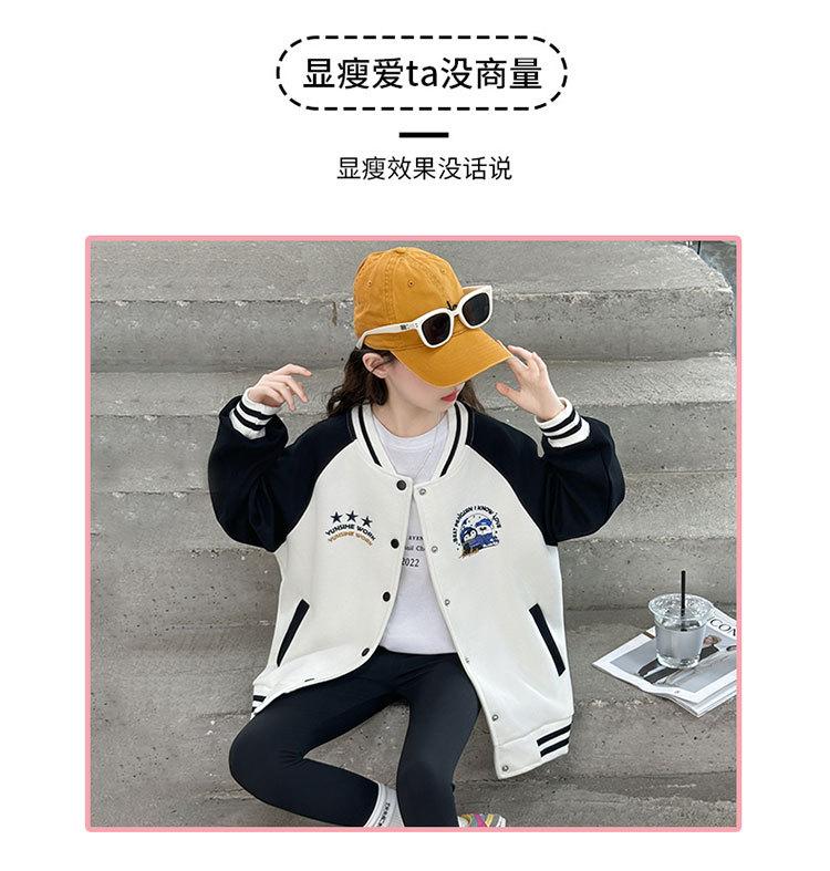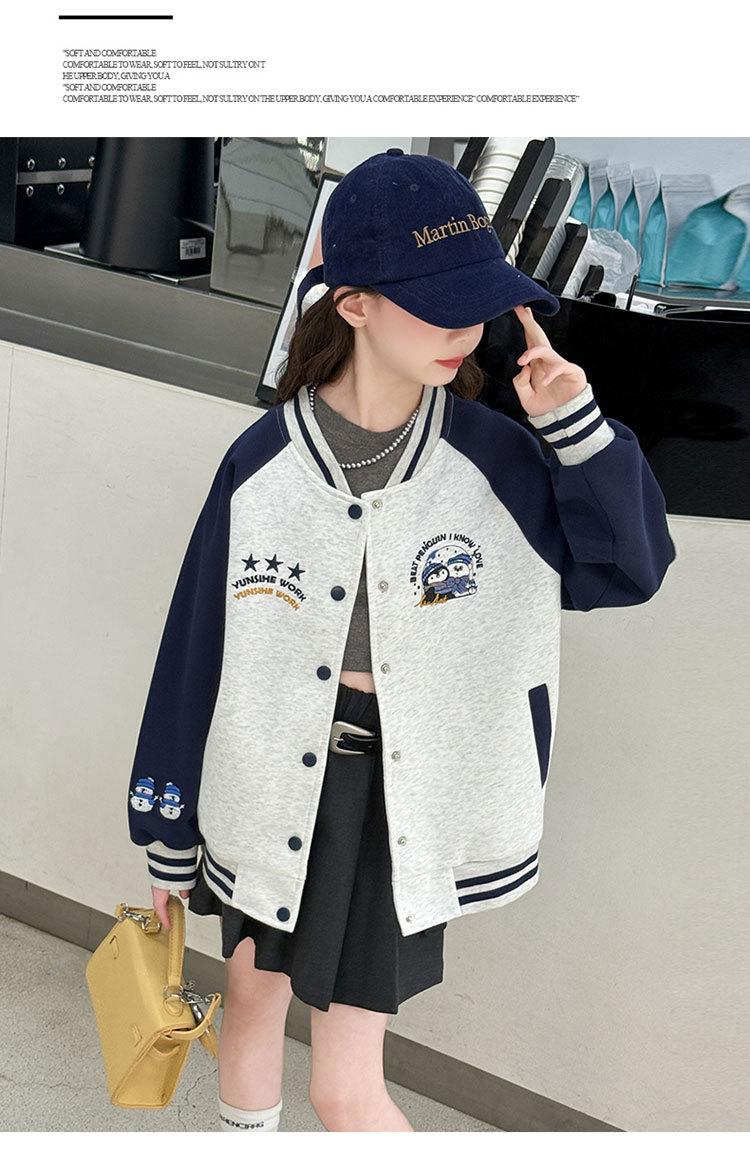Roupa Exterior de Outono para Meninas 2025 Nova Jaqueta de Beisebol Infantil da Moda para Crianças Médias e Grandes, Bordado, Bloco de Cores, Top de Outono