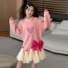 Vestido Bordado com Gola de Renda para Meninas Estilo Primavera e Outono Moda Coreana Infantil Menininha Vestido de Princesa Estiloso Crianças Pequenas e Médias