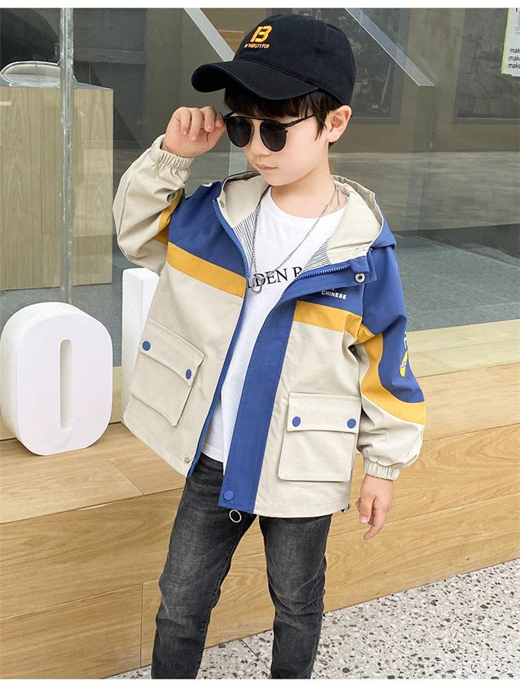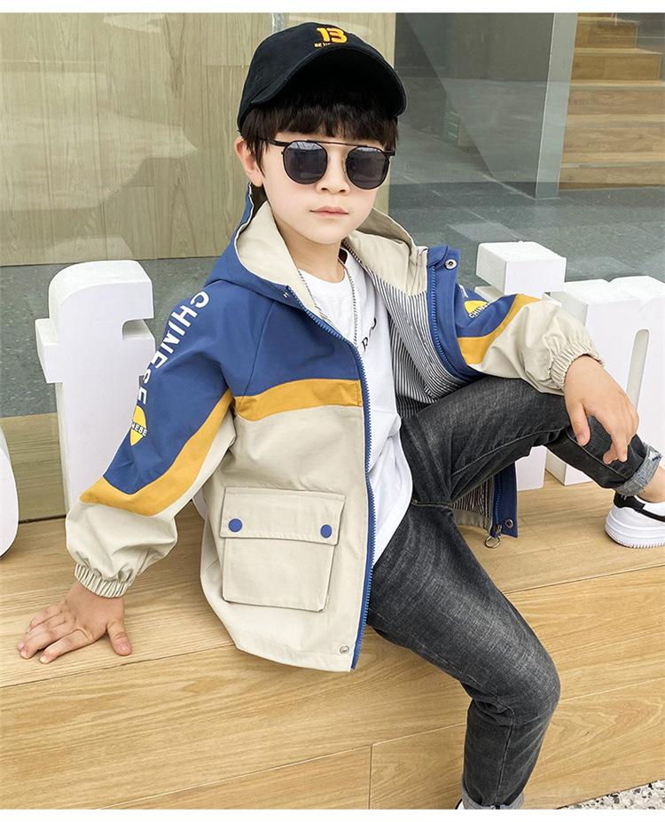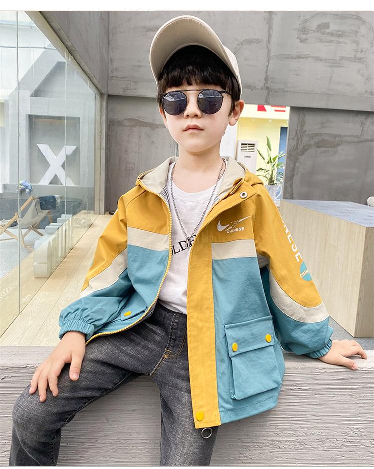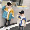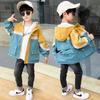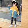 2025 Novo Casaco Infantil de Primavera e Outono Moda Bloco de Cores com Capuz Meninos e Meninas Versátil Casual Top Estilo Moderno