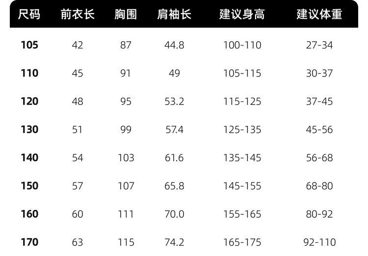 Children (3~8 years old, 100~140cm)