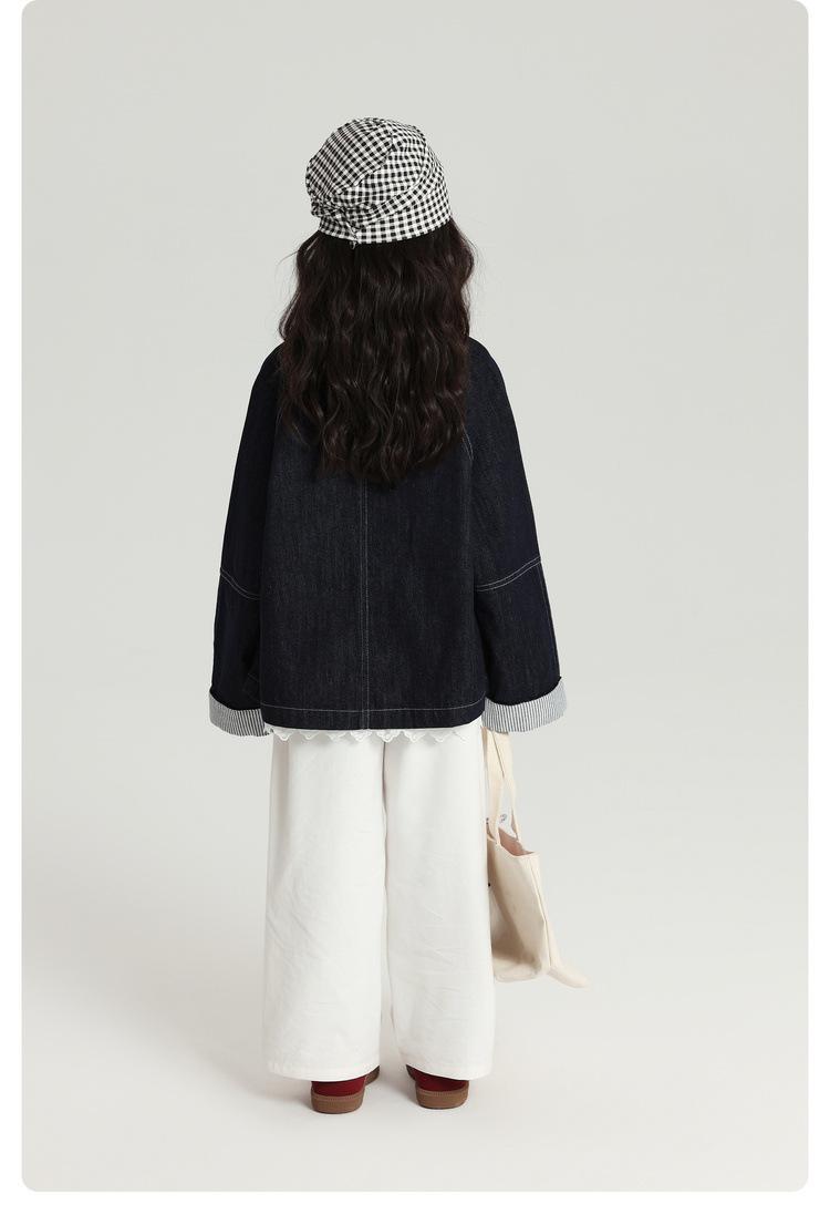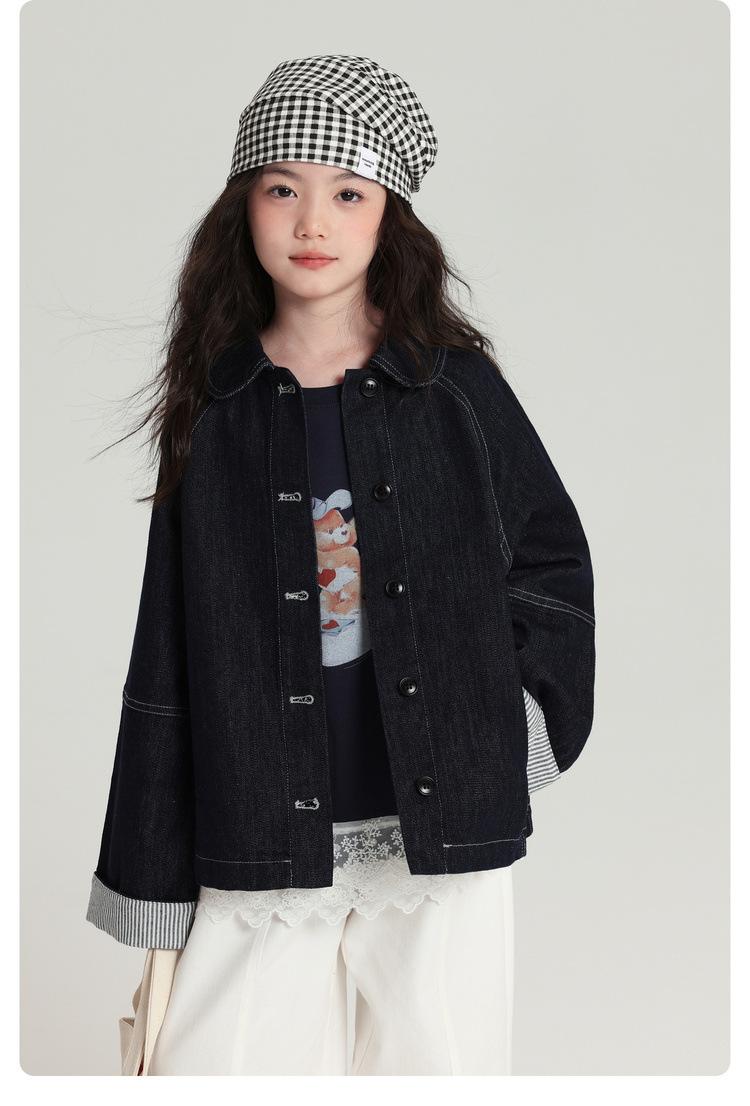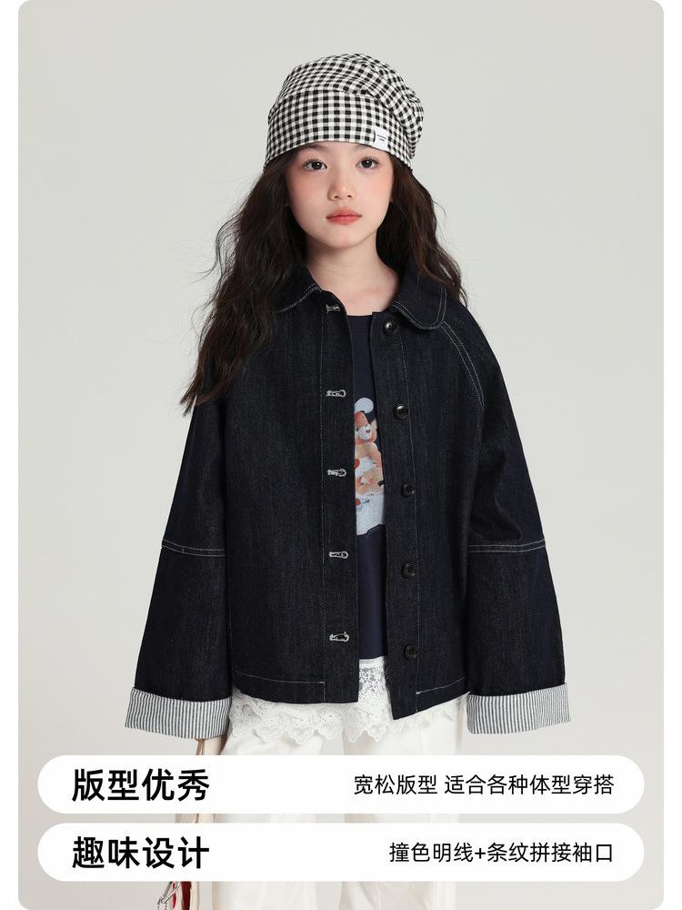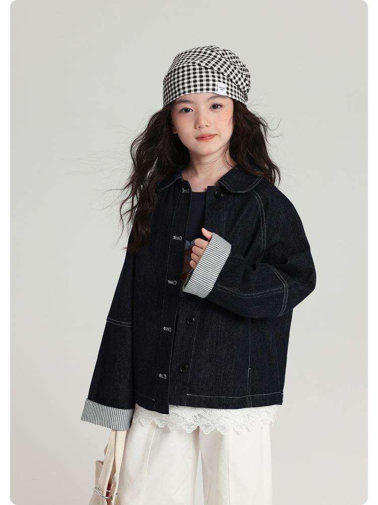 Pudding Haru Roupas Infantis Top 2025 Outono Novo Estilo Jaqueta Jeans Versátil Retrô para Meninas Punhos Emendados Listrados