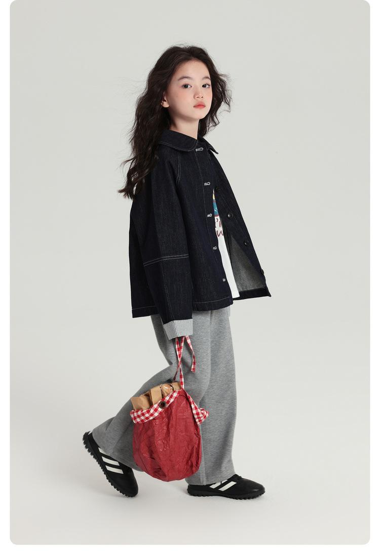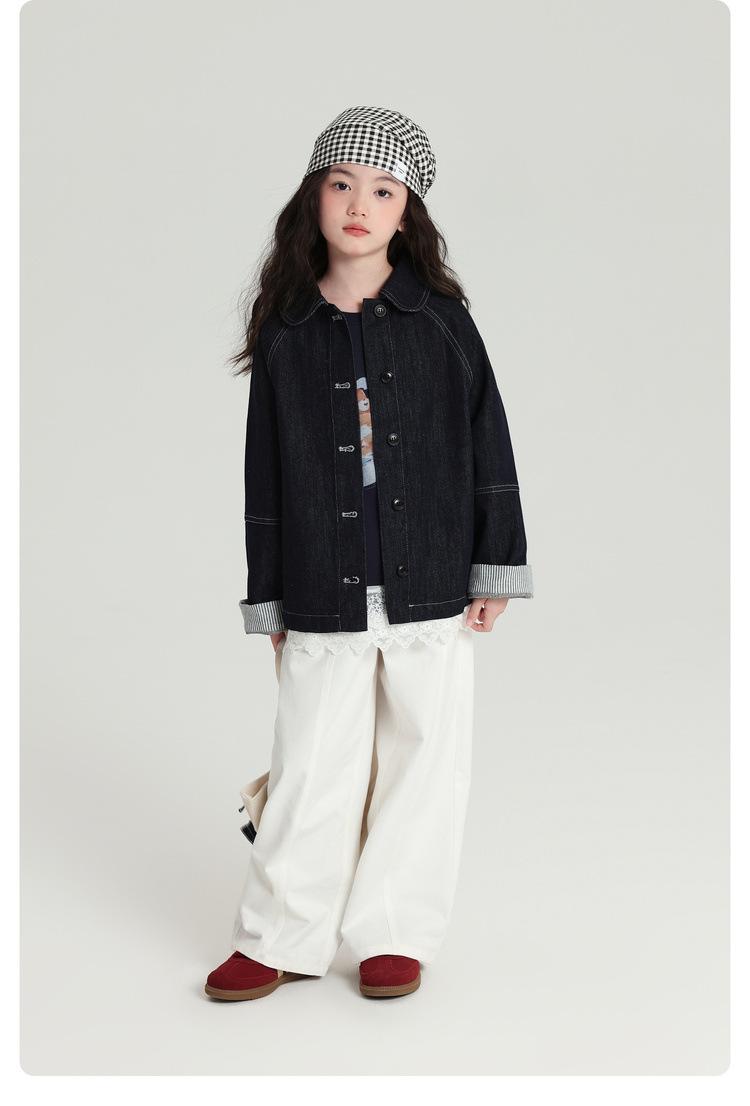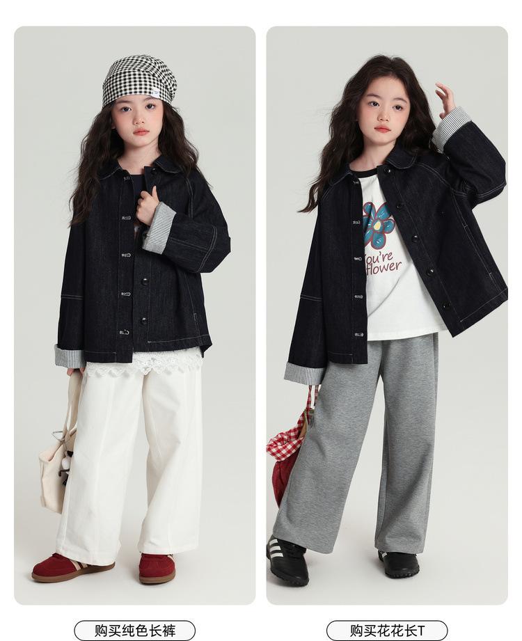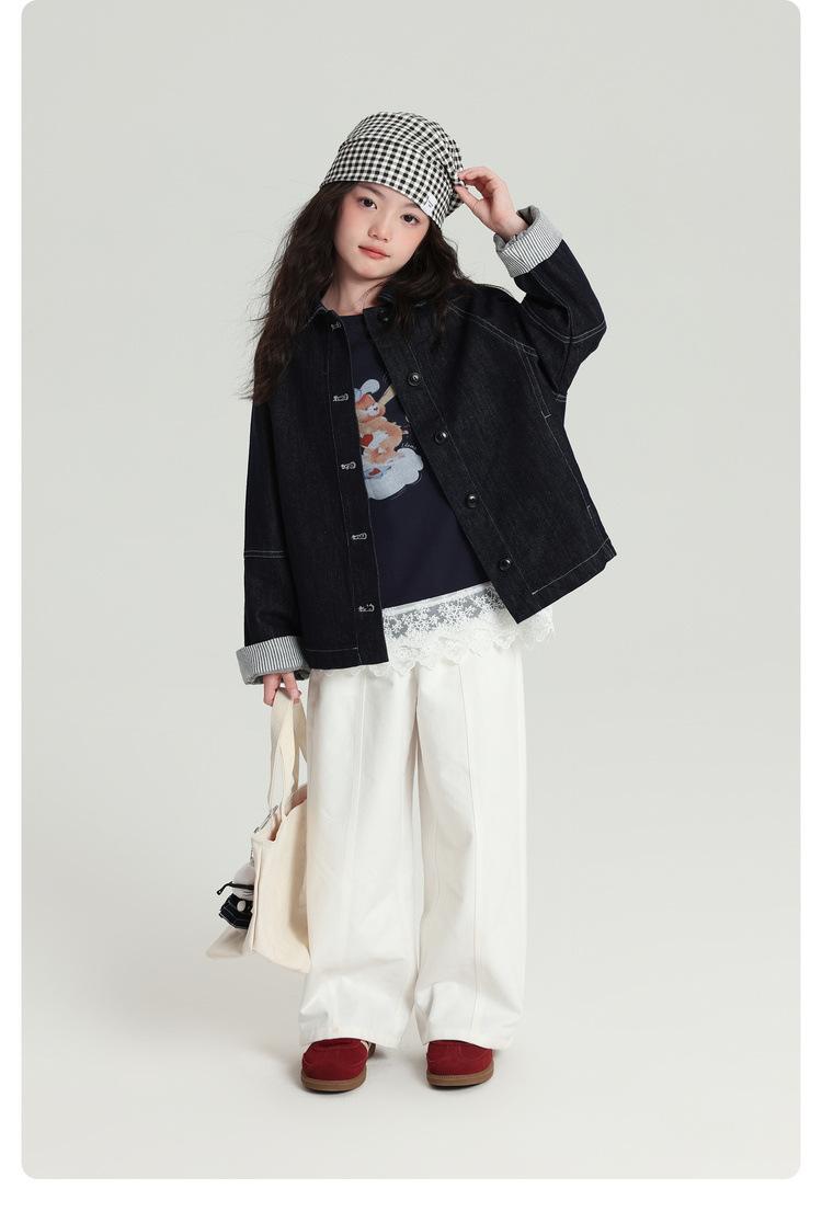 Pudding Haru Roupas Infantis Top 2025 Outono Novo Estilo Jaqueta Jeans Versátil Retrô para Meninas Punhos Emendados Listrados