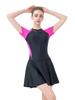 Traje de Banho Plus Size Feminino de Manga Curta Inteiro Saia Ângulo Reto Cobrindo a Barriga Emagrecimento Conservador com Bojo Traje de Banho para Águas Termais