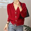 Cardigã de malha curto de gola redonda francês feminino 2025 outono novo roupa feminina top senso de design botão casaco de suéter