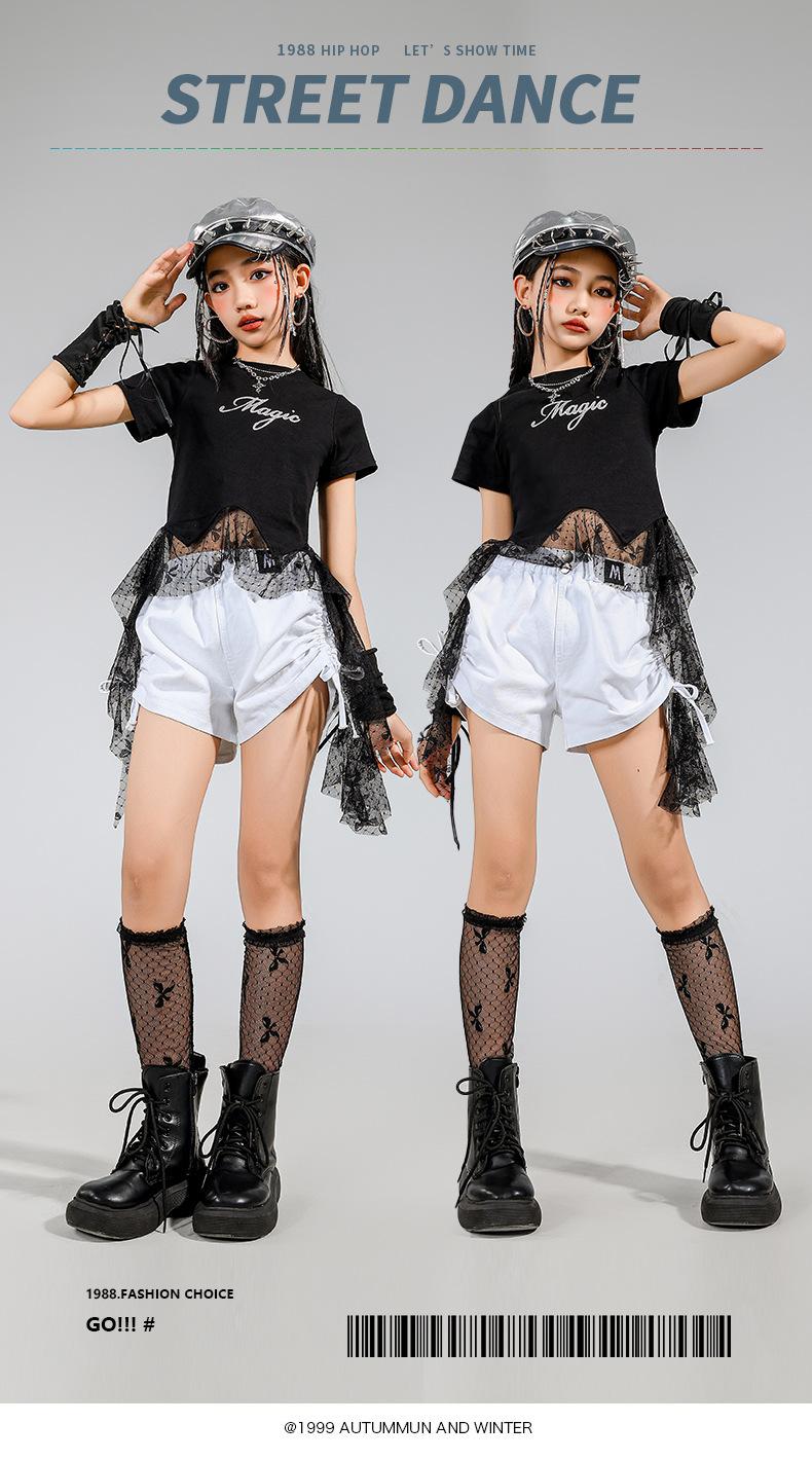 Fantasia de Dança Jazz para Meninas Roupa Streetwear Hiphop Infantil Colete Babado Performance Roupa da Moda Fantasia Infantil para Apresentação de Dança de Rua