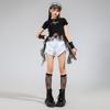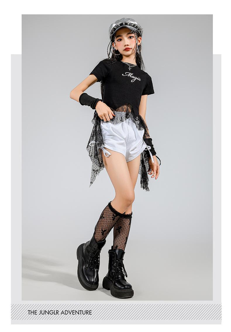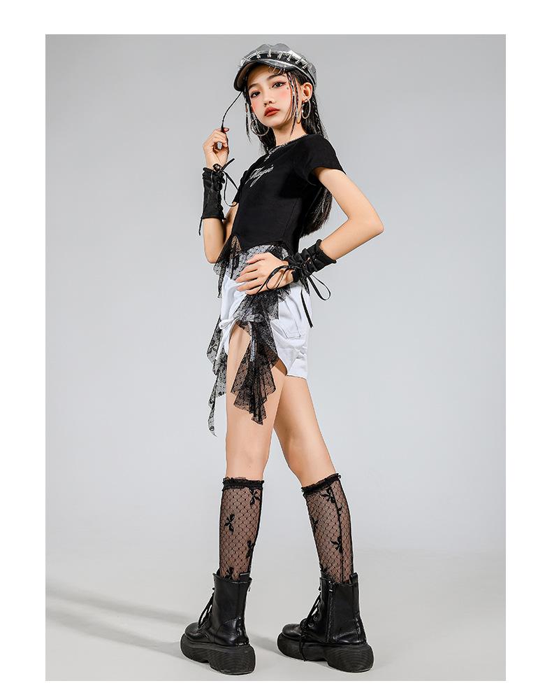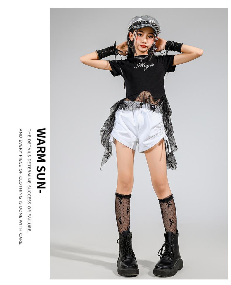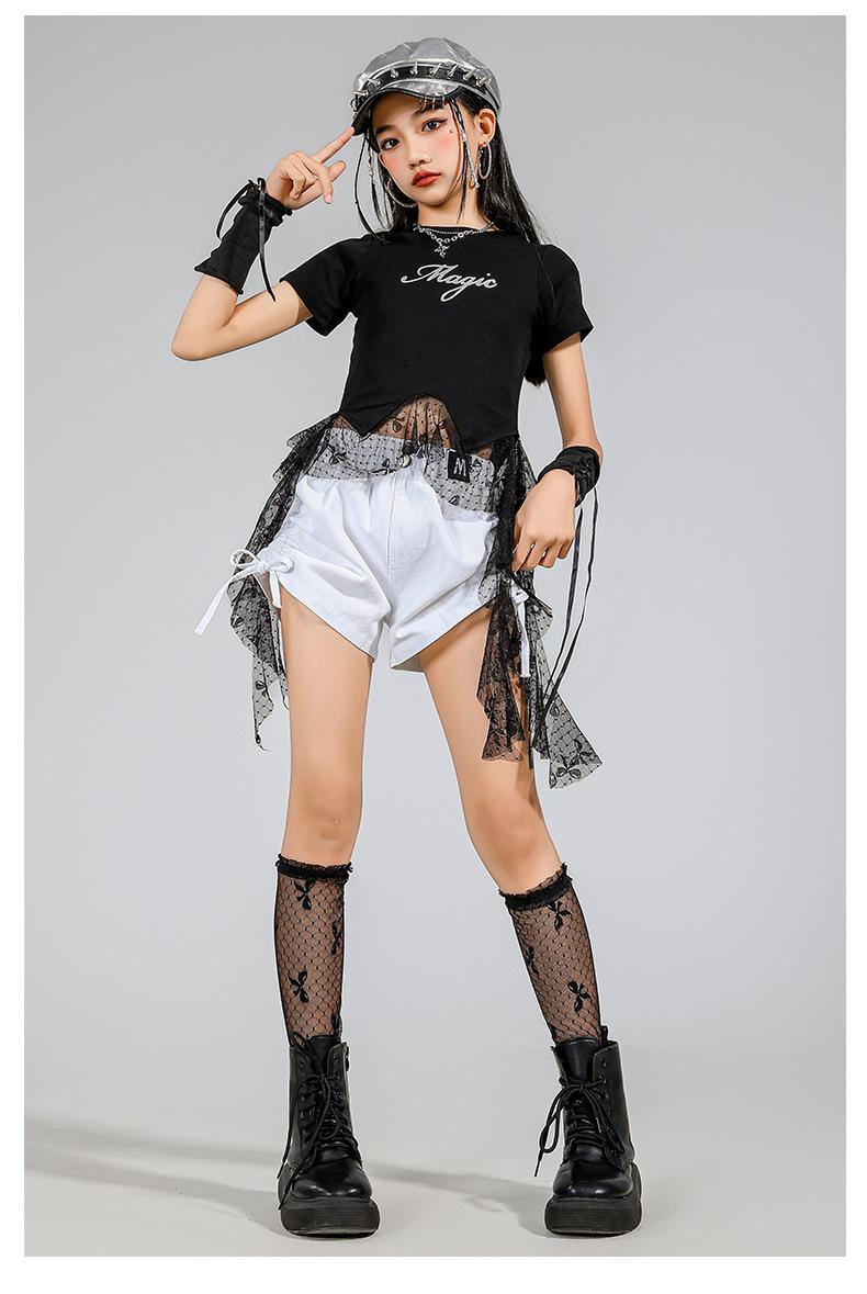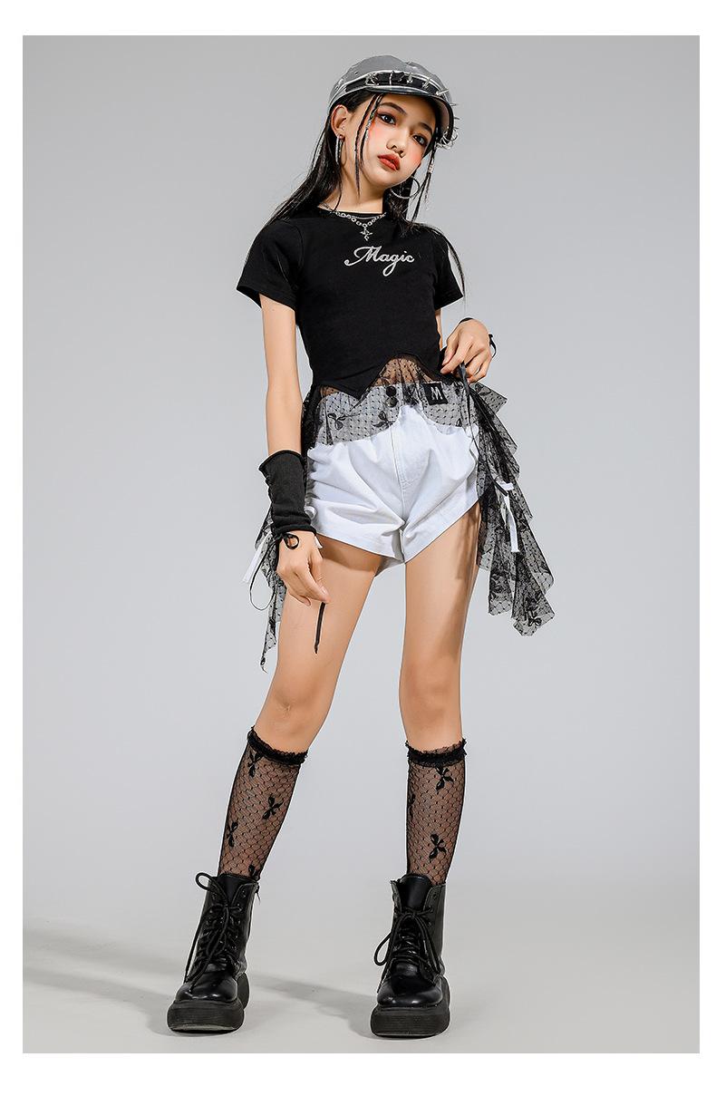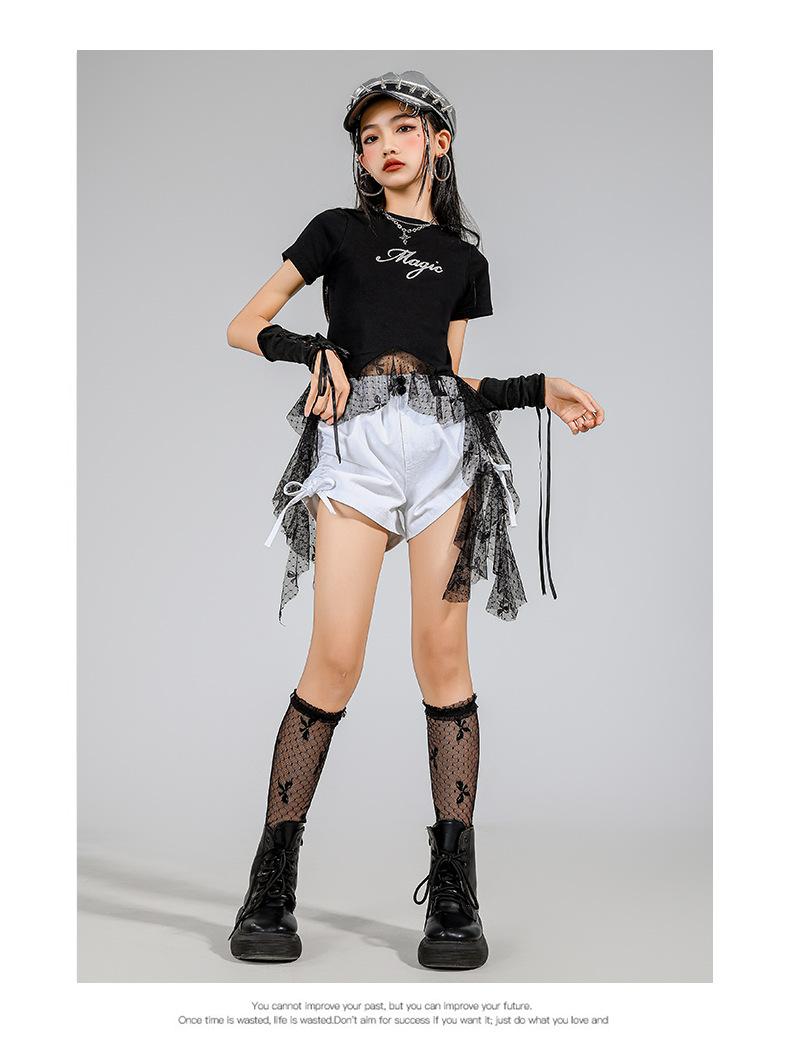 D05 black lace hotfix short sleeve + 7138 white shorts, D05 black lace hotfix short sleeve + 7138 white shorts...