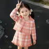 Conjunto de Suéter Infantil Outono e Inverno Novo Menina Jaqueta Tricô Xadrez de Botões Duplos Estilo Coreano Conjunto de Colete e Vestido