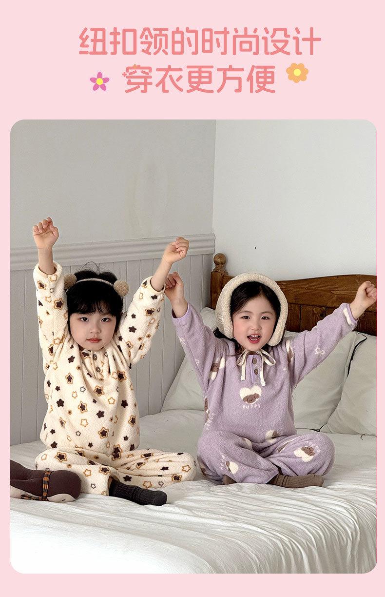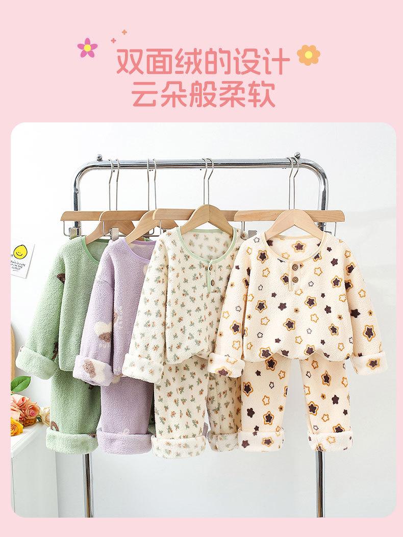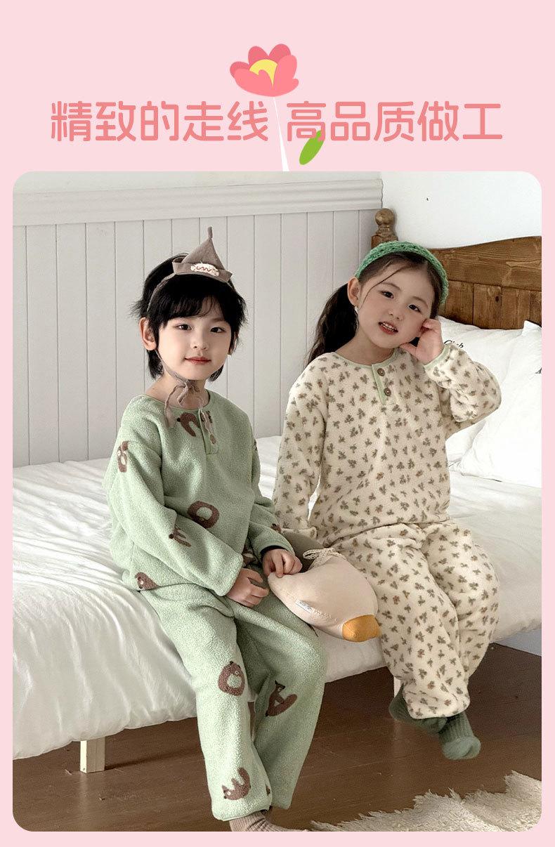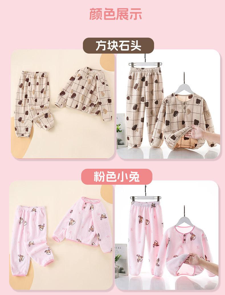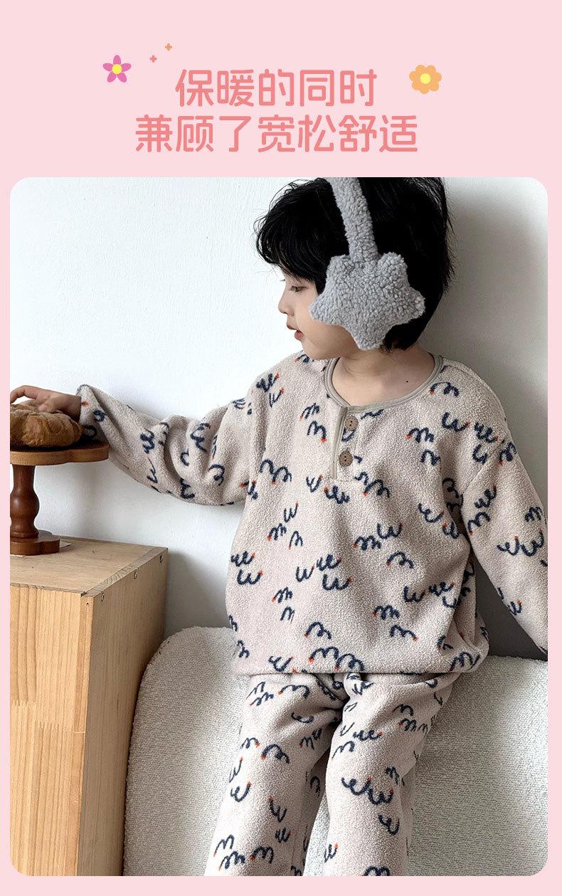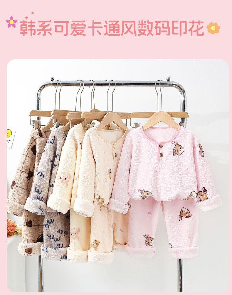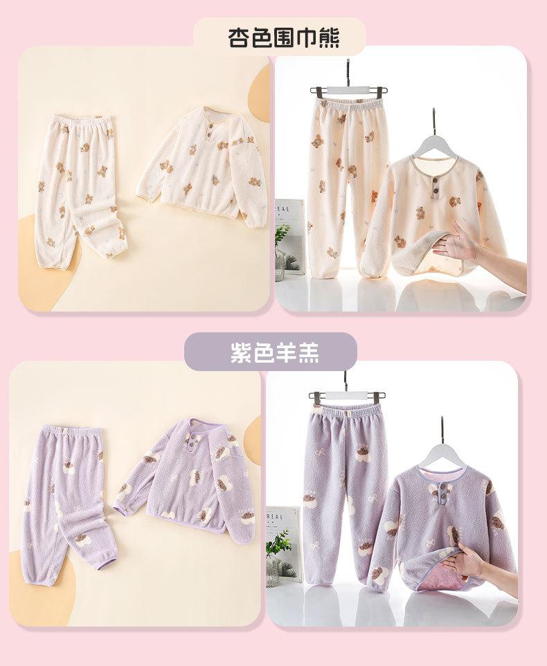 Pijamas de Meninos Estilo Outono e Inverno 2025 Novo Conjunto Infantil de Flanela para Meninas, Homewear de Lã, Espessura Aveludada com Lã Coral