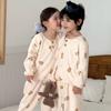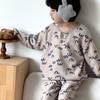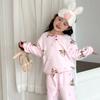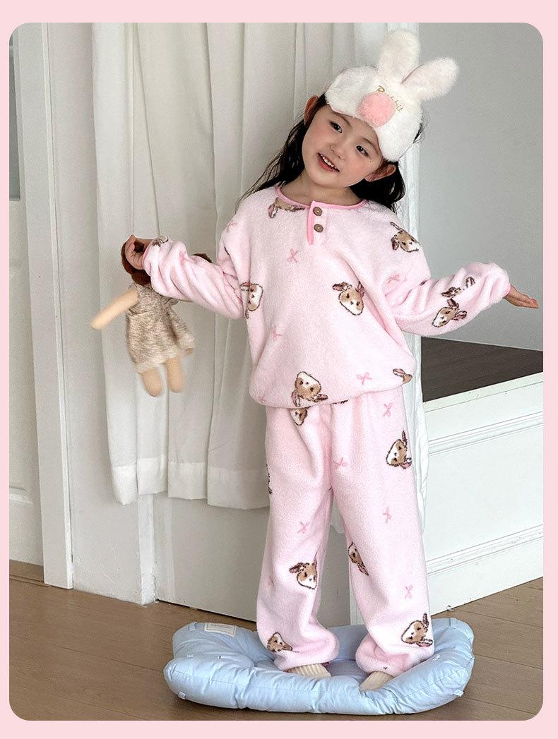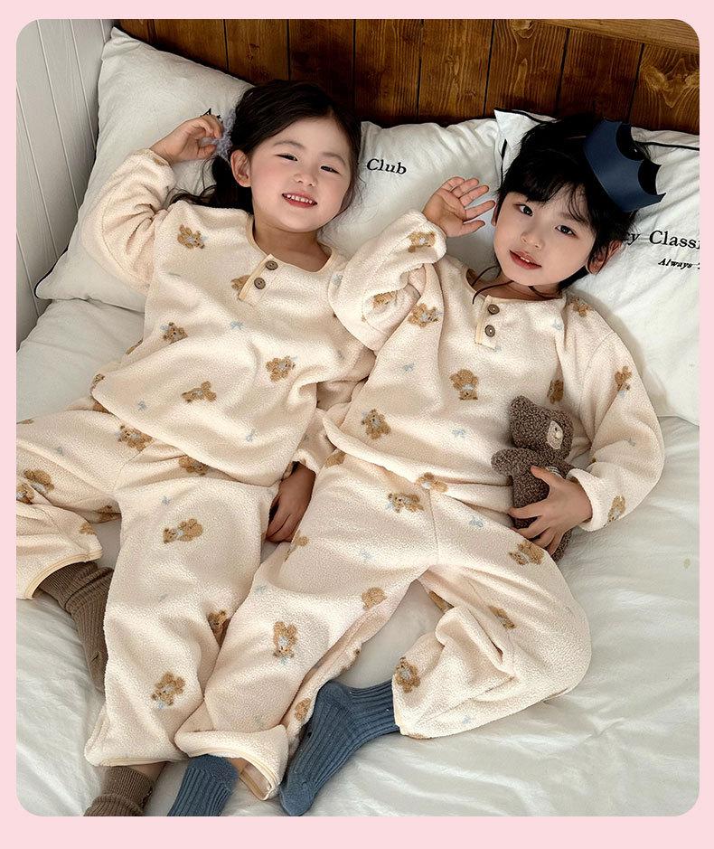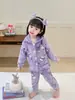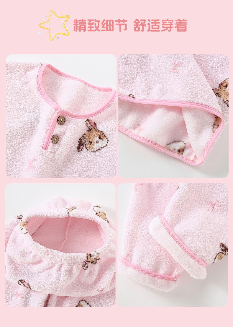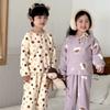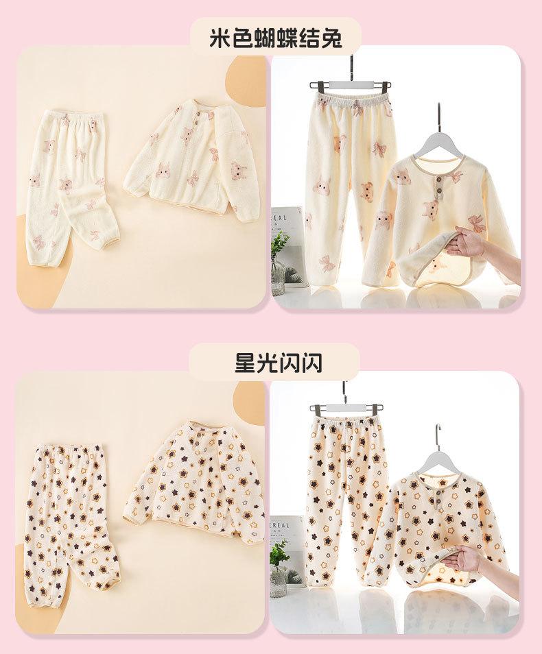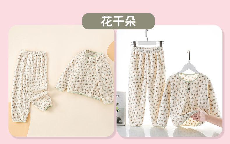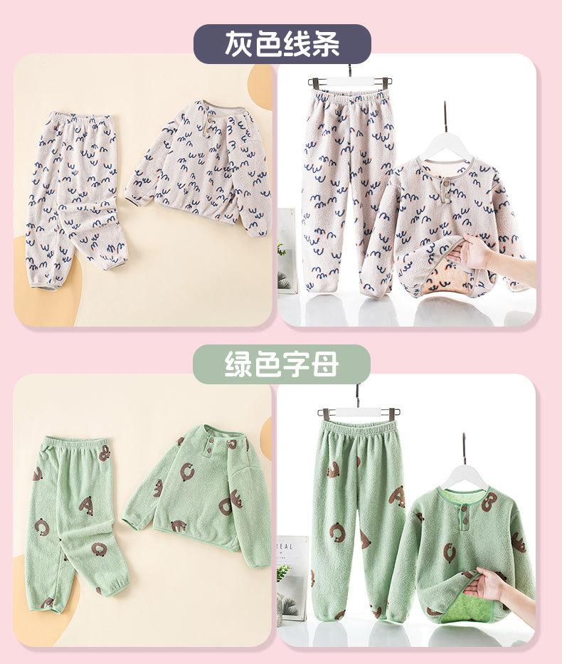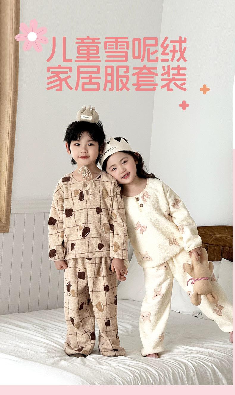 Pijamas de Meninos Estilo Outono e Inverno 2025 Novo Conjunto Infantil de Flanela para Meninas, Homewear de Lã, Espessura Aveludada com Lã Coral