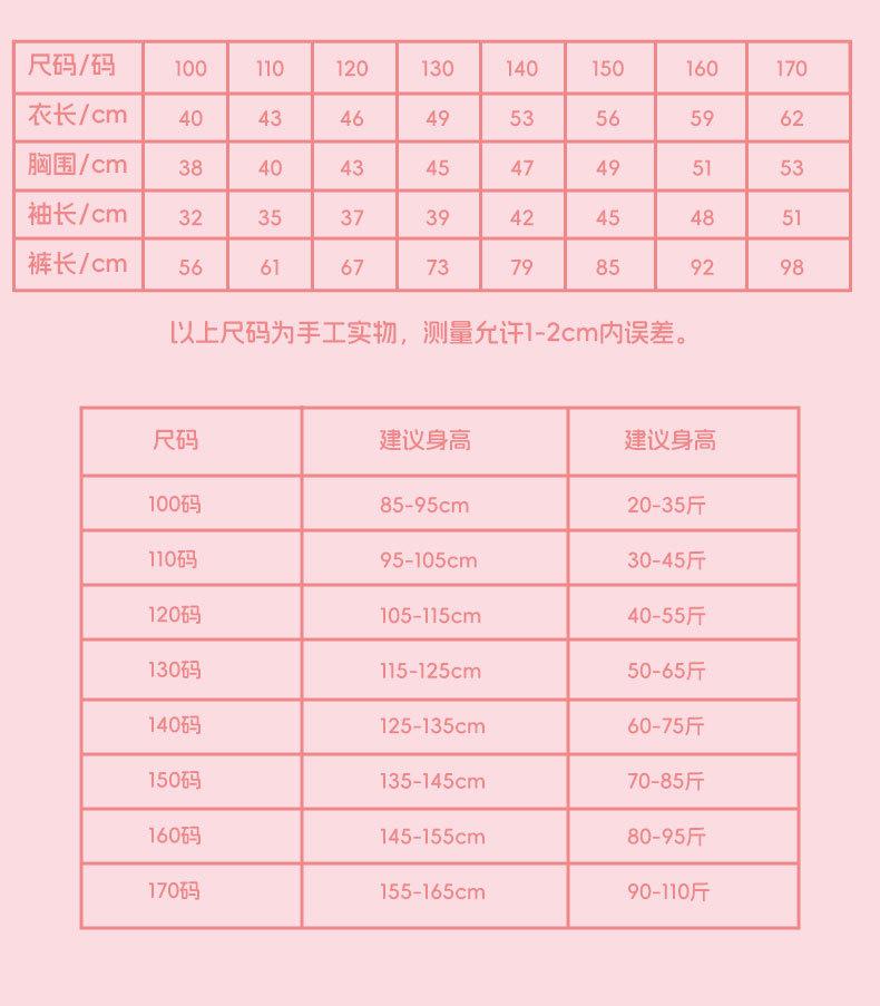 100cm, 110cm, 120cm, 130cm, 140cm, 150cm, 160cm, 170cm