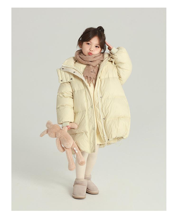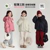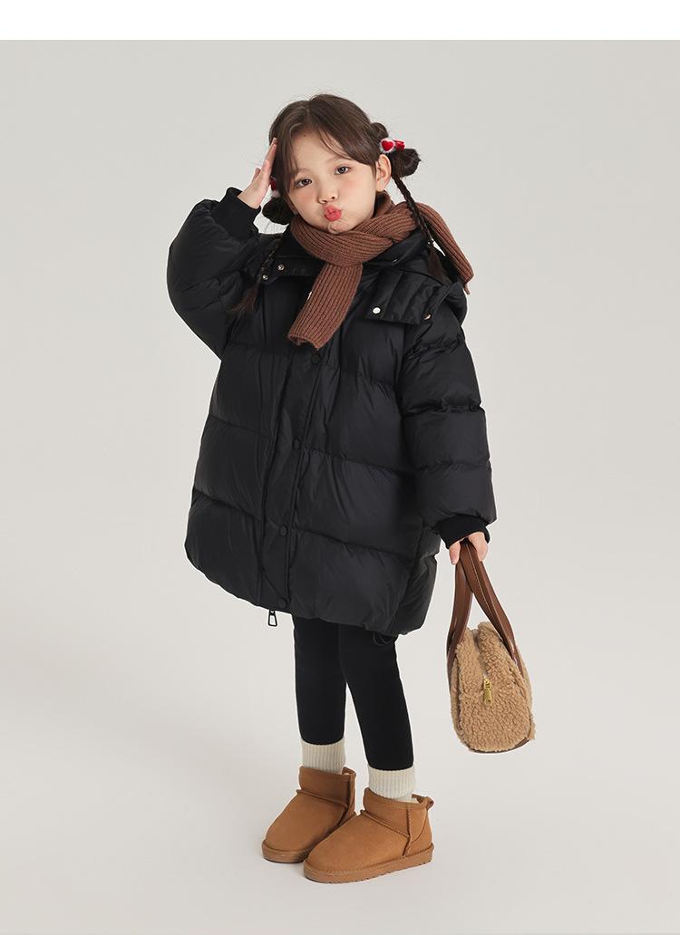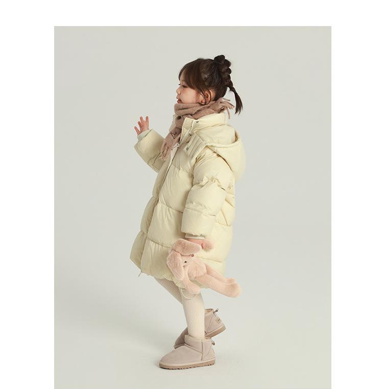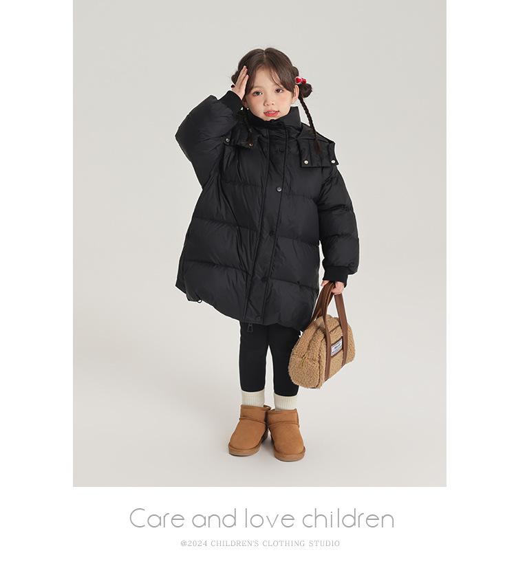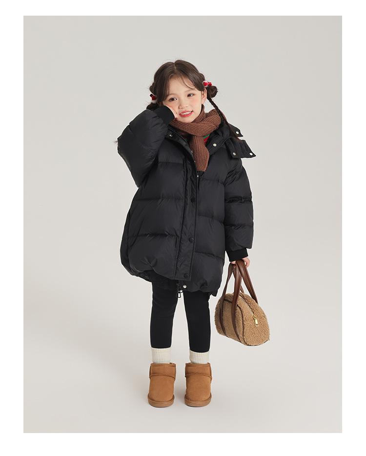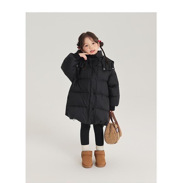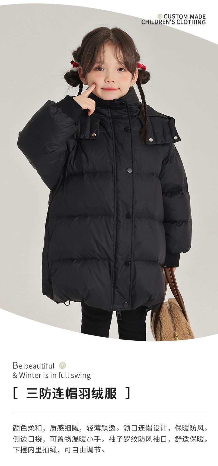 Jaqueta de Penas Inverno 2024 Novo Estilo para Meninas Estilo Médio Quente à Prova de Três Capuz Jaqueta de Penas Infantil