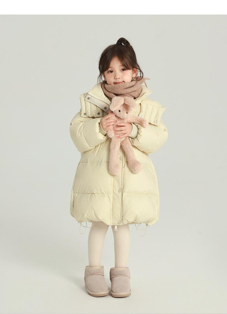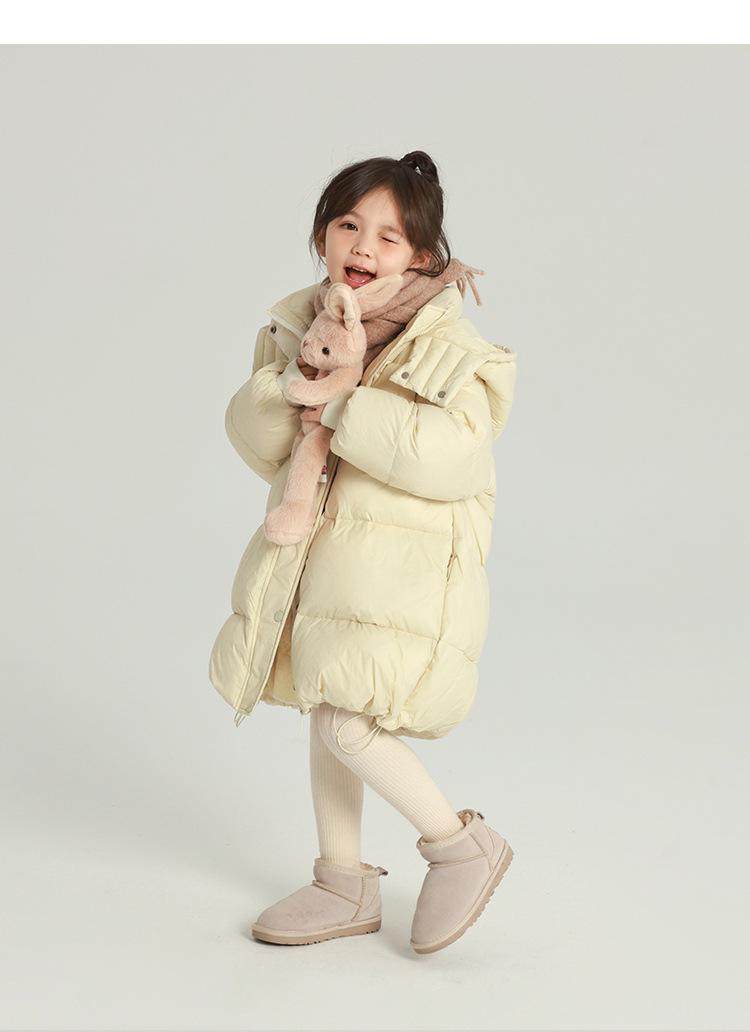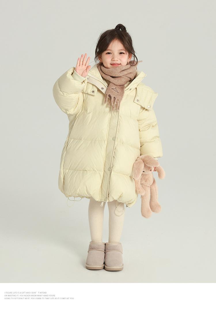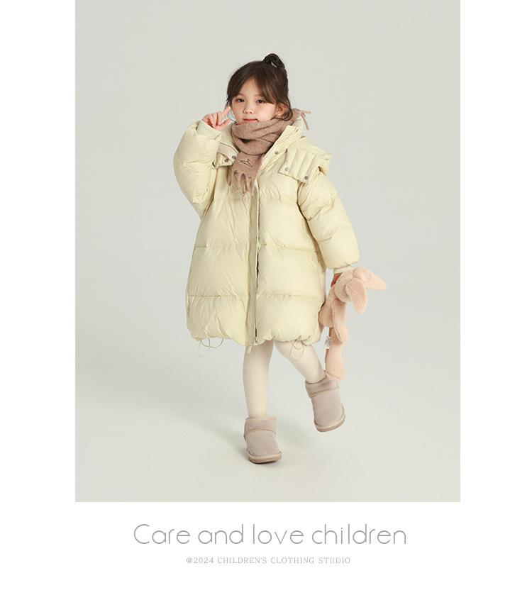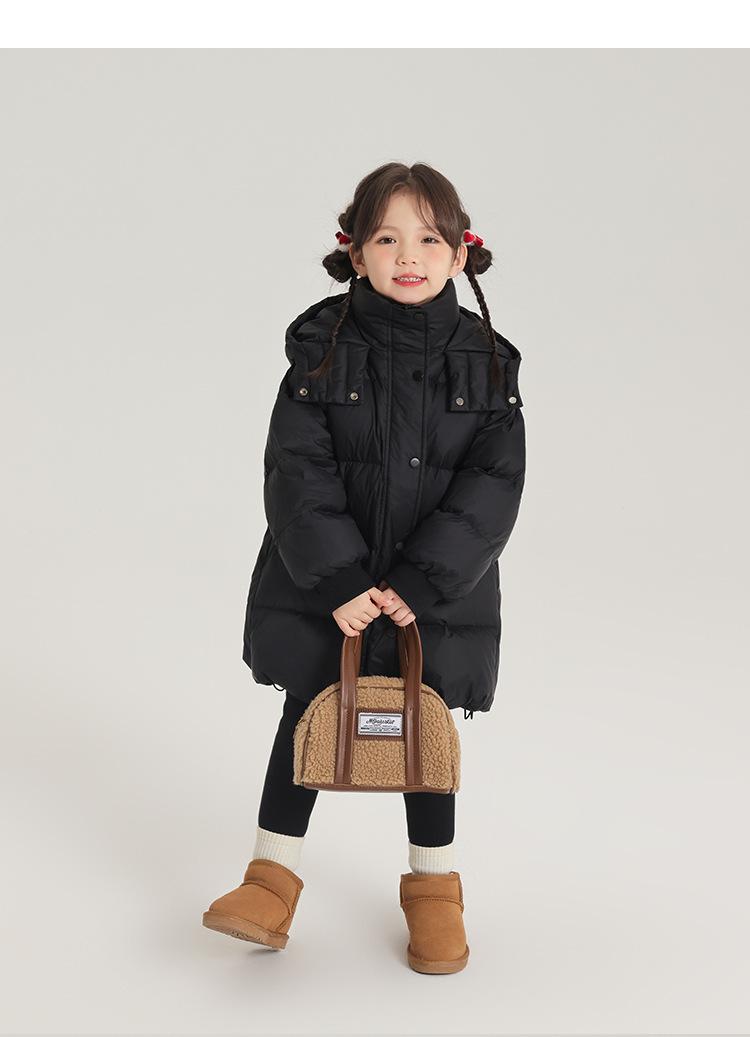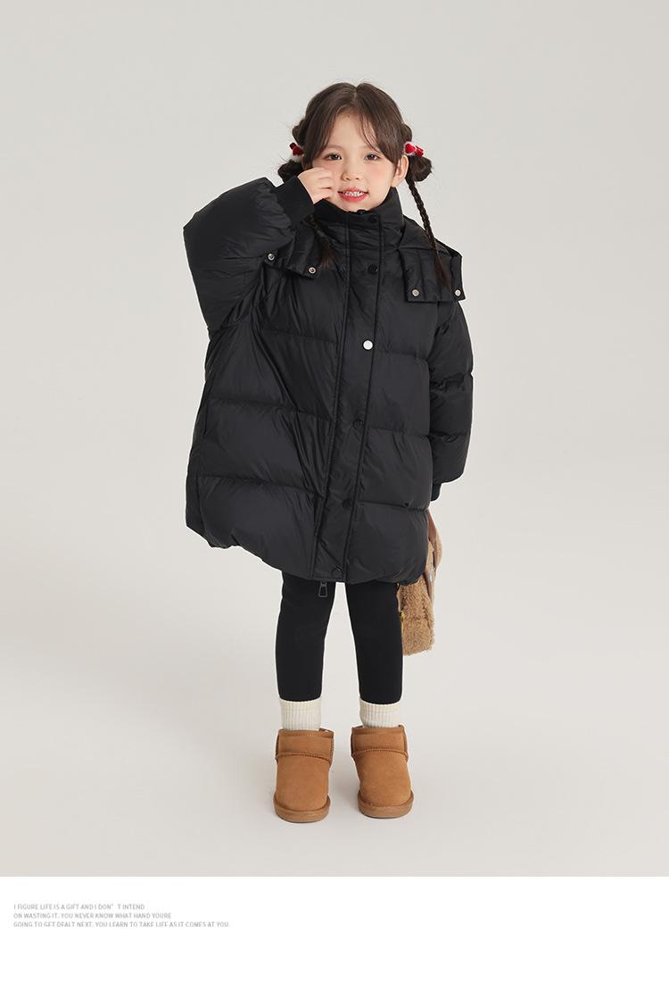 Jaqueta de Penas Inverno 2024 Novo Estilo para Meninas Estilo Médio Quente à Prova de Três Capuz Jaqueta de Penas Infantil
