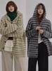 Cárdigan de punto con capucha a rayas estilo retro coreano para mujer, otoño e invierno, estilo perezoso, suelto y versátil, suéter suave y ceroso