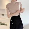 Regata de tricô gola alta pequena feminina minimalista básica cor sólida justa versátil camisa base