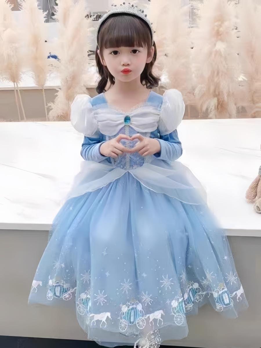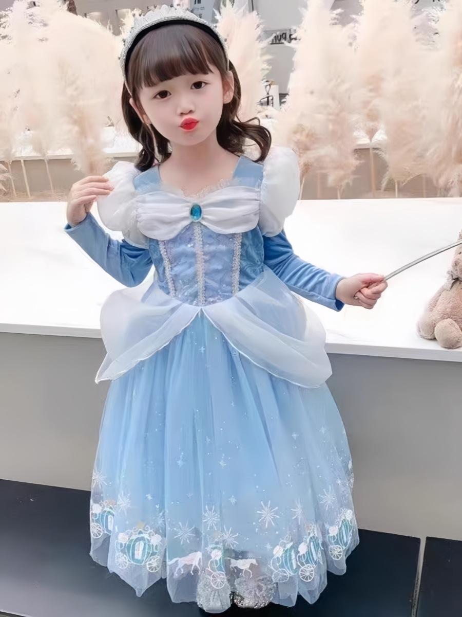 Vestido da Princesa Elsa para Meninas Estilo Primavera Outono Verão Vestido Elsa Cinderela Halloween Dia das Crianças Vestido de Areia