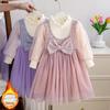 Vestido de Outono e Inverno para Meninas 2025 Novo Vestido Infantil de Lã da Moda Roupas de Primavera e Outono para Bebês Vestido de Princesa
