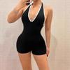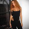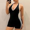 Macacão feminino sexy com alças finas e ombros de fora, estilo europeu e americano, com design listrado e temperamento, cor sólida