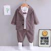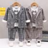 Conjunto de Terno de Outono para Meninos 2025 Novo Estilo Terno Listrado de Manga Comprida de Outono para Meninos Conjunto de Três Peças com Gravata Borboleta Roupas da Moda
