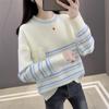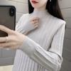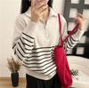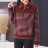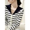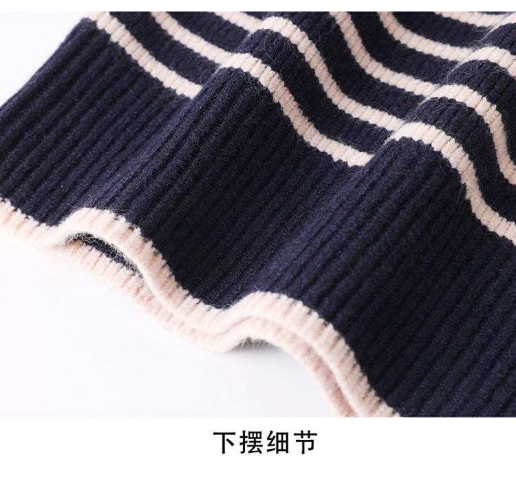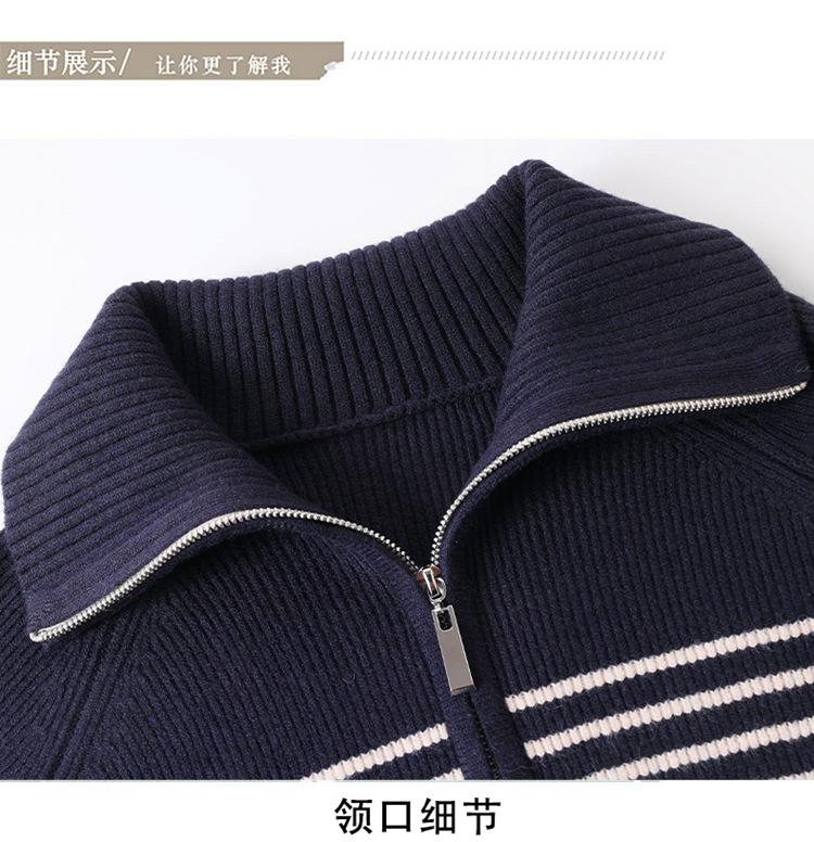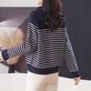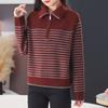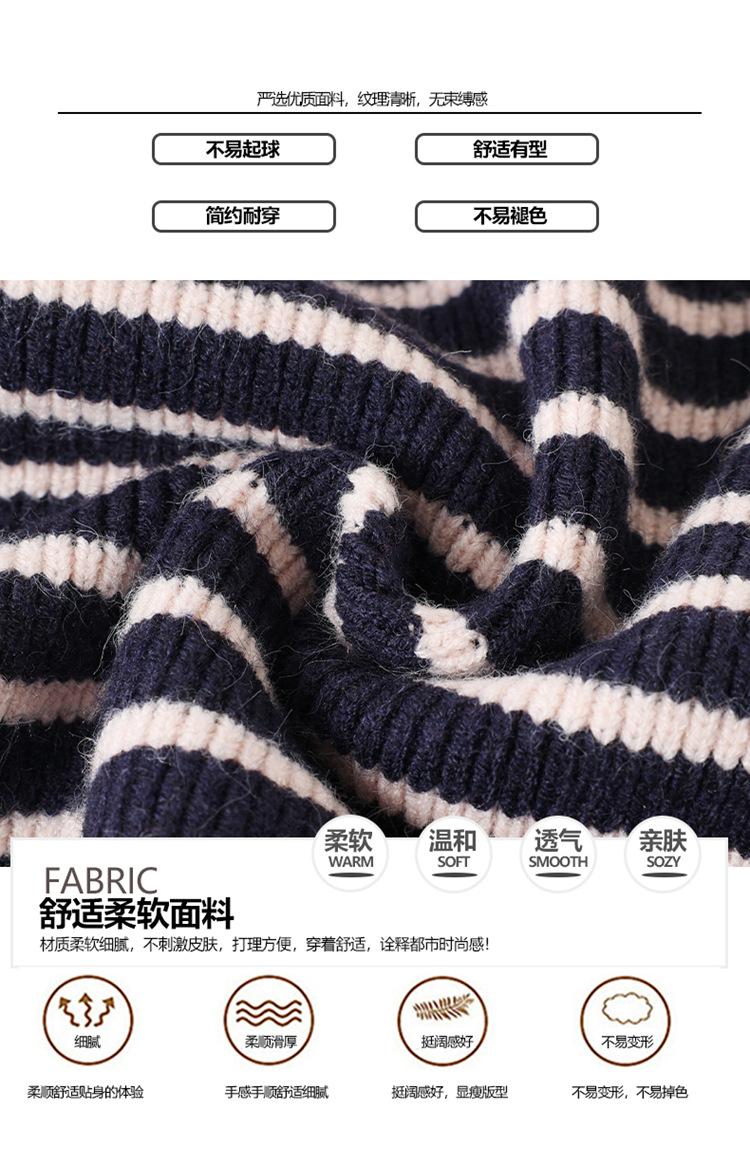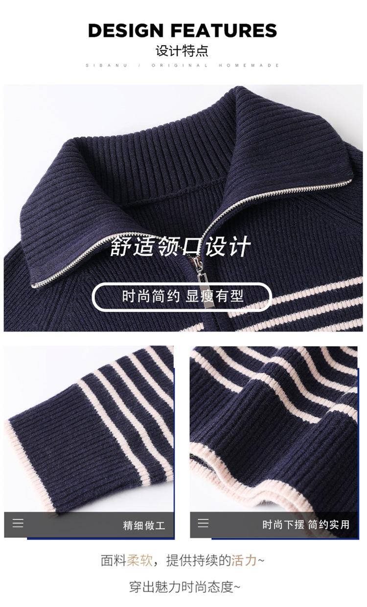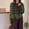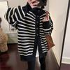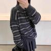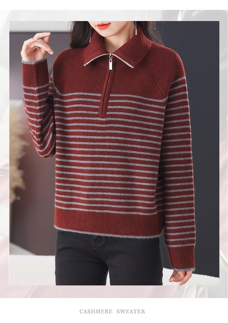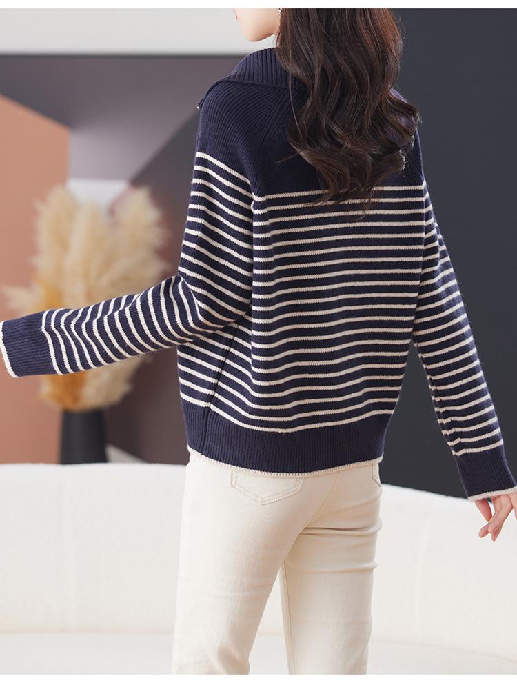 Outono/Inverno 2025 Novo Suéter Tricotado Listrado Casual Solto Feminino com Gola Alta e Meio Zíper Top de Manga Longa