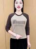 Camiseta de Manga Comprida Estampada com Letras Feminina 2025 Primavera e Outono Nova Camiseta Básica Ajustada Modeladora Top Spice Girl