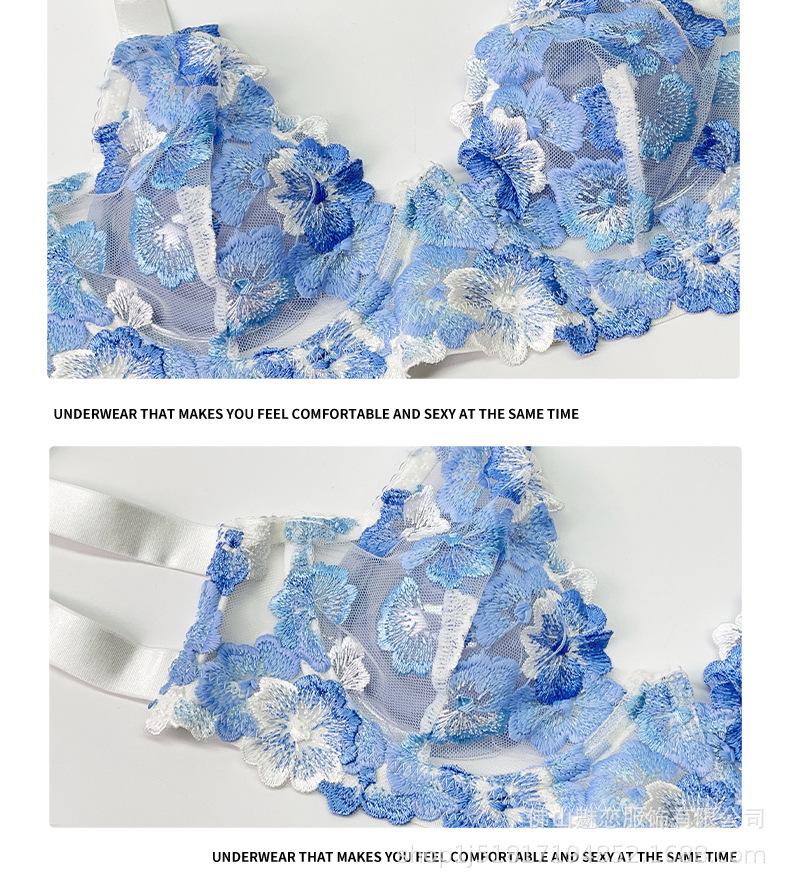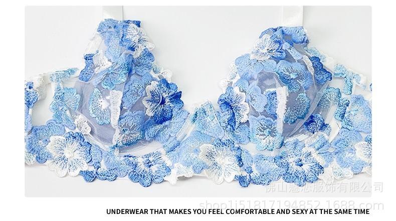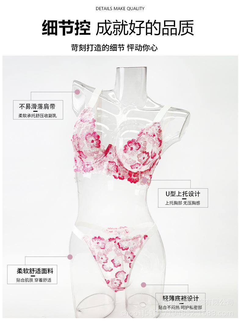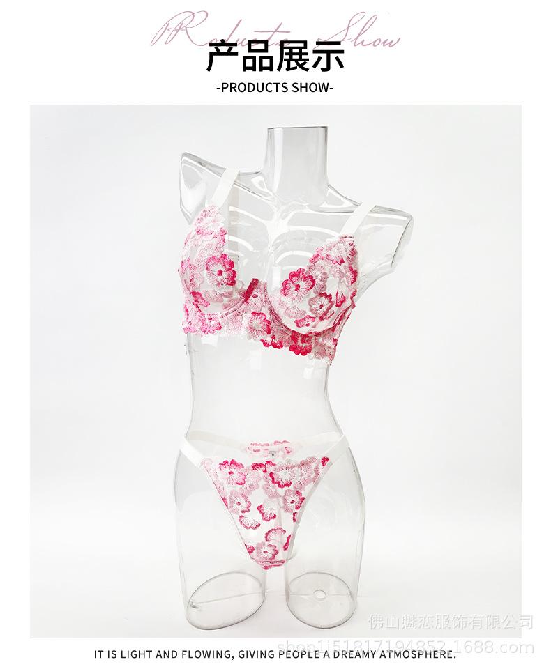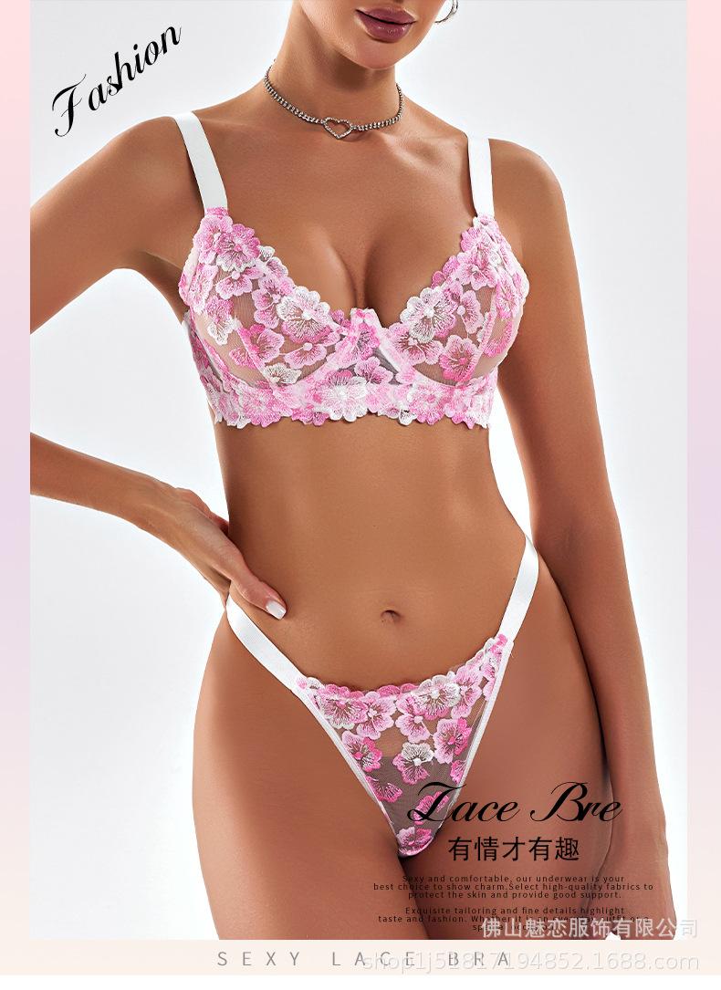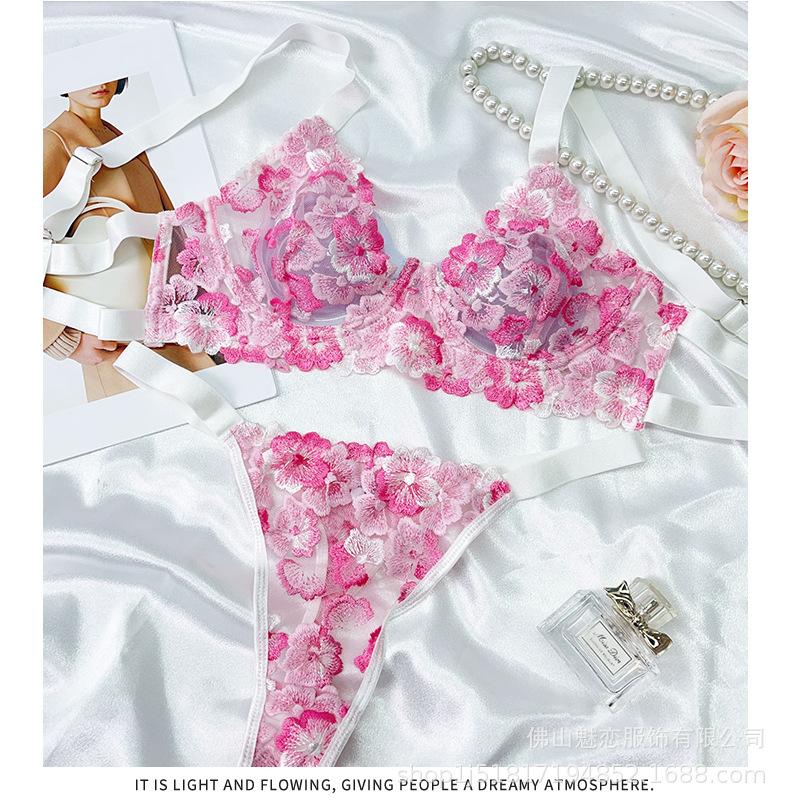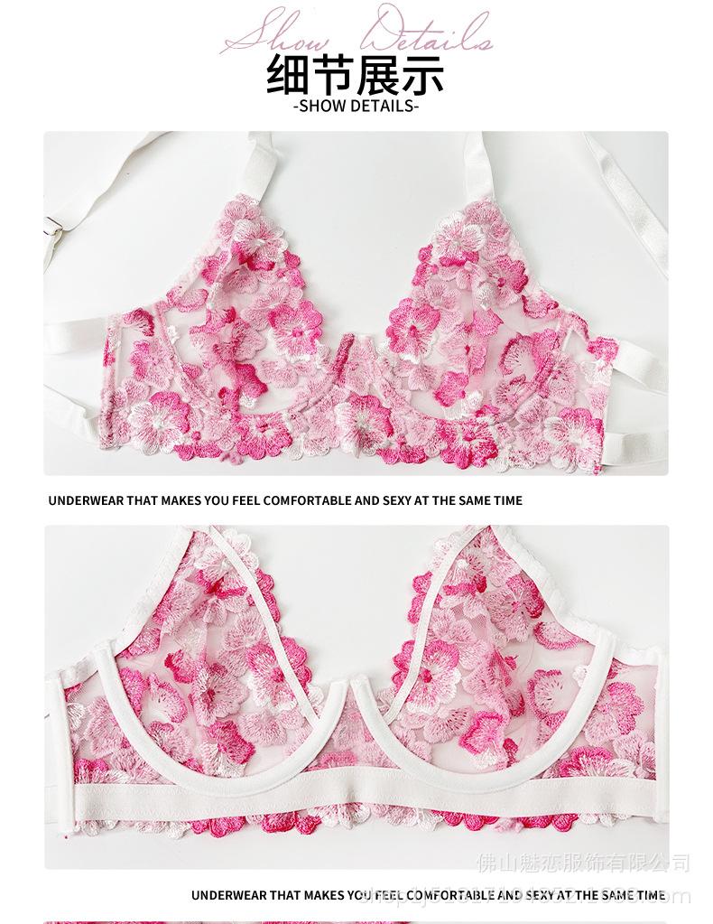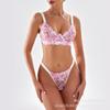 Sutiã Doce para Menina de Comércio Exterior Europeu e Americano Estampa Bordada Sutiã Peito Grande Parece Pequeno Push-up Ultrafino Conjunto de Lingerie Sexy