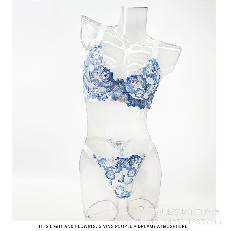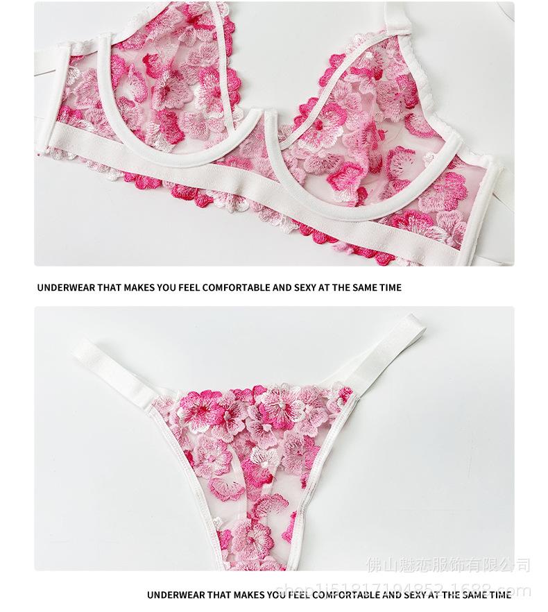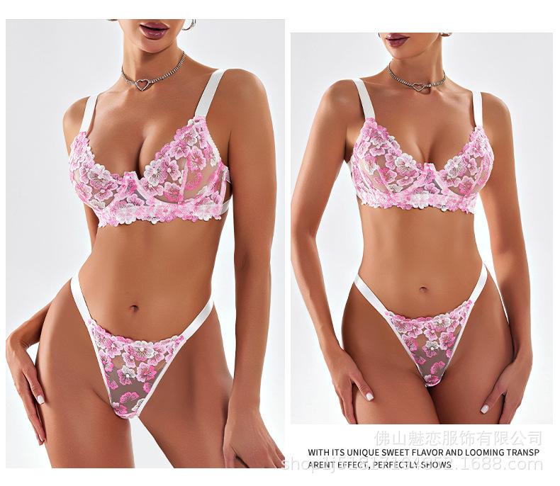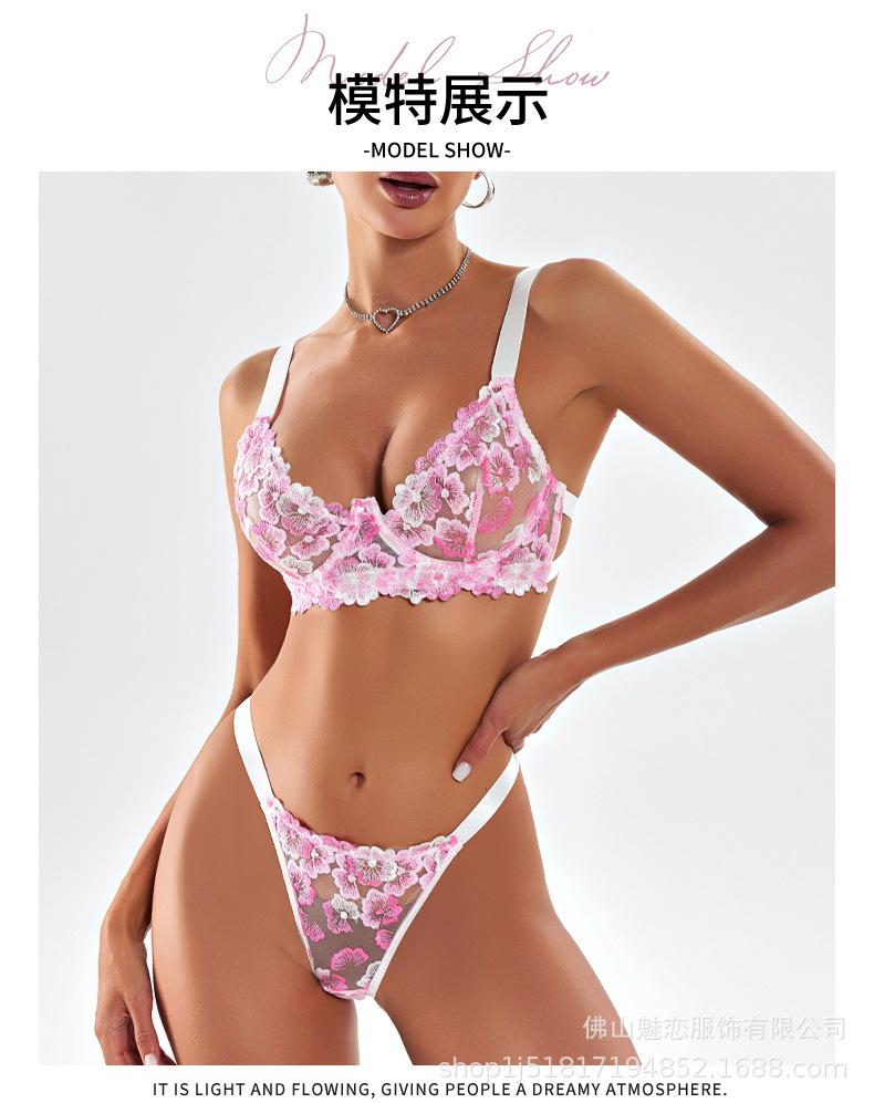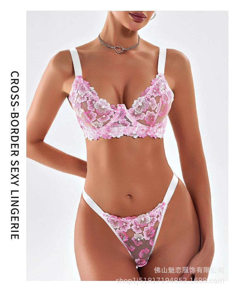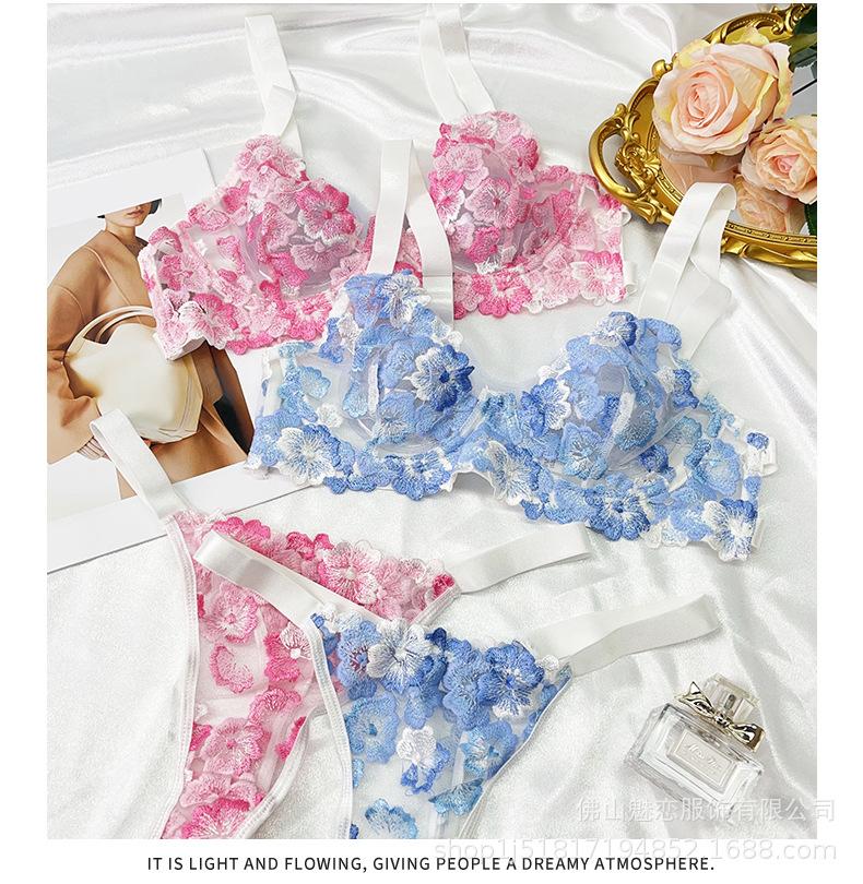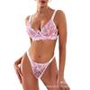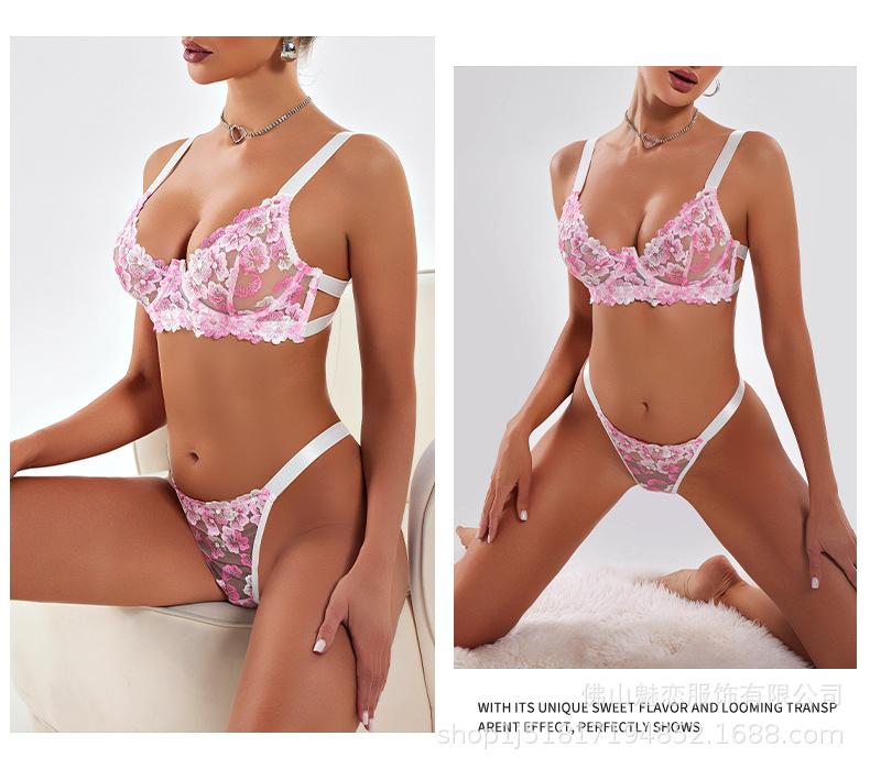Sutiã Doce para Menina de Comércio Exterior Europeu e Americano Estampa Bordada Sutiã Peito Grande Parece Pequeno Push-up Ultrafino Conjunto de Lingerie Sexy