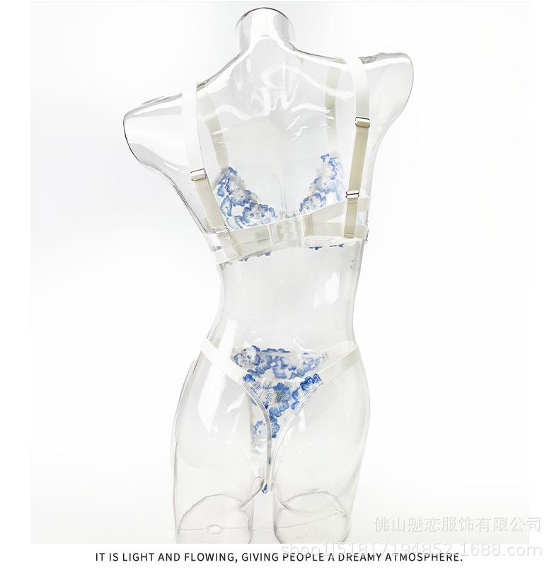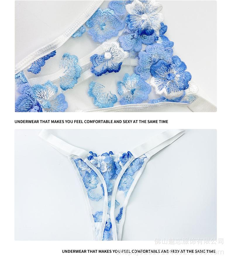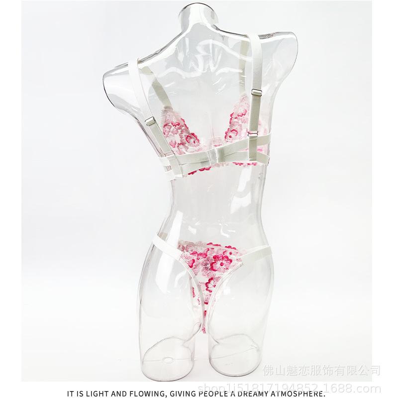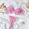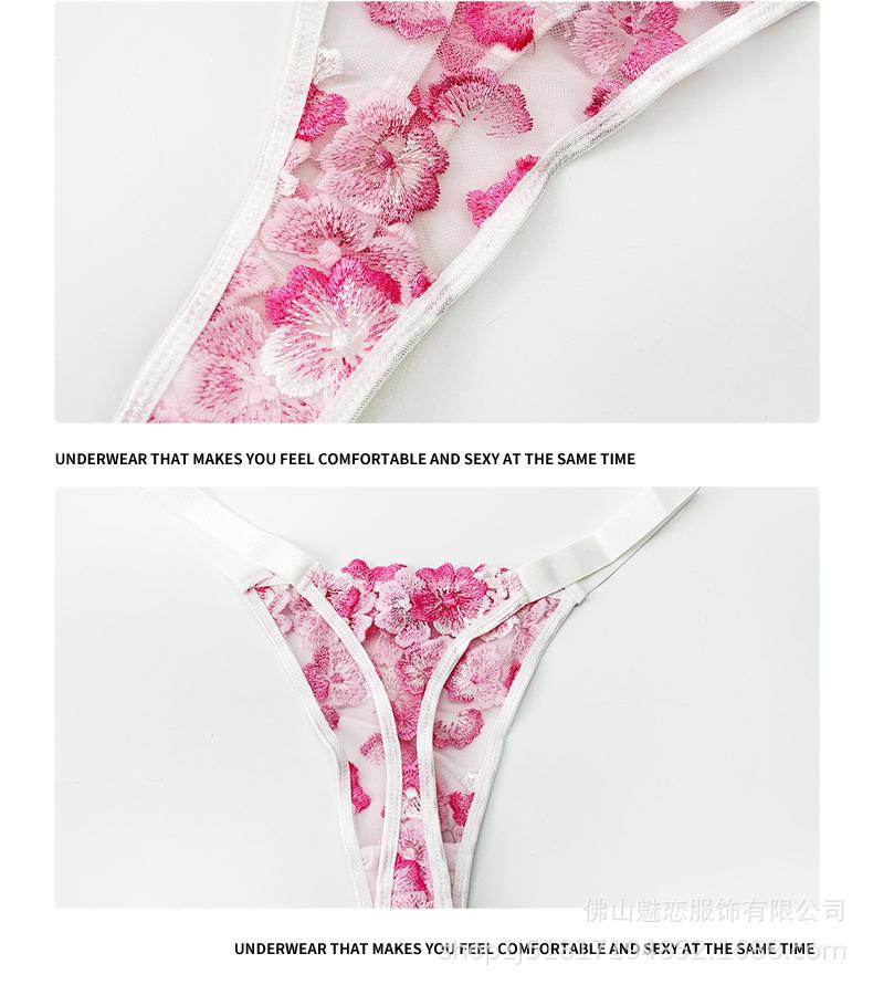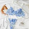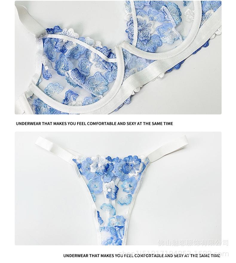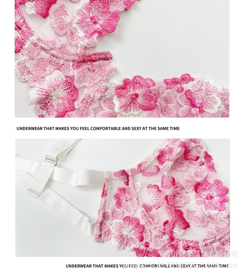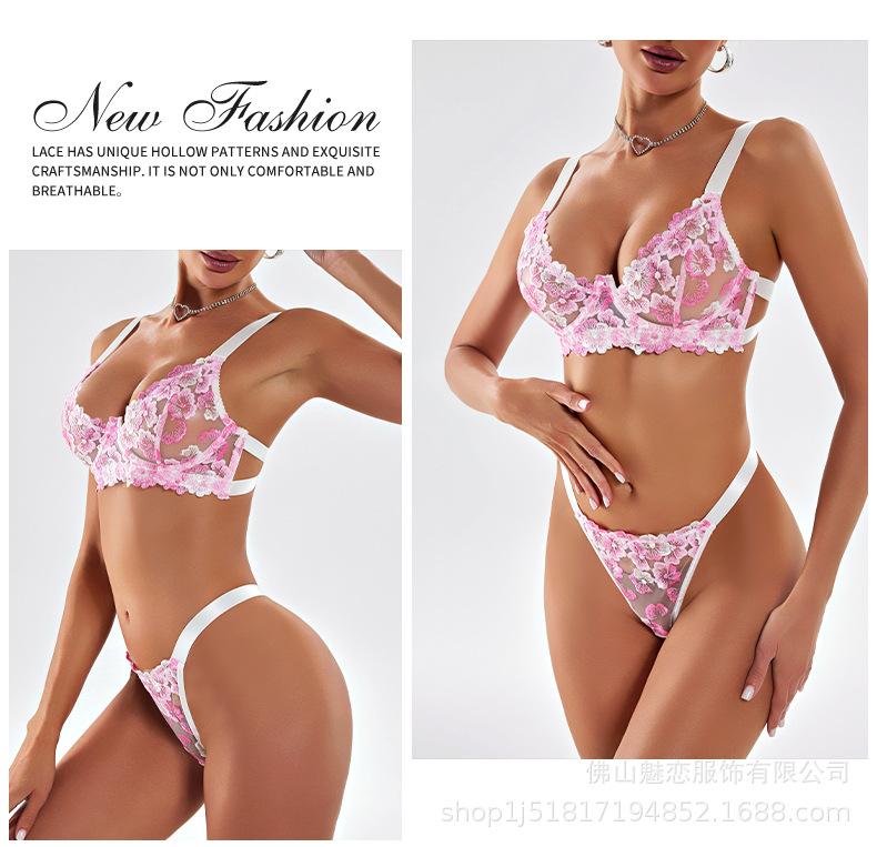Sutiã Doce para Menina de Comércio Exterior Europeu e Americano Estampa Bordada Sutiã Peito Grande Parece Pequeno Push-up Ultrafino Conjunto de Lingerie Sexy