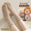 Meias de lã coral para mulheres outono e inverno mais veludo mais meias grossas de cano médio meias quentes para casa para dormir meias de chão meias longas meias pós-parto