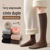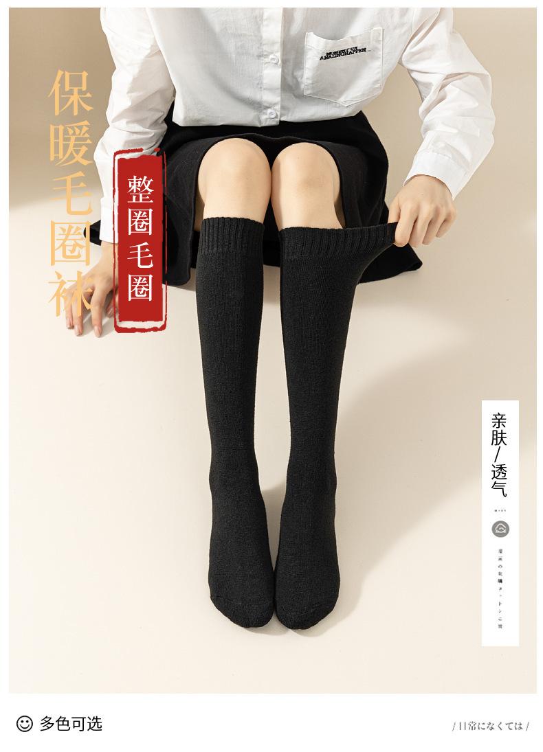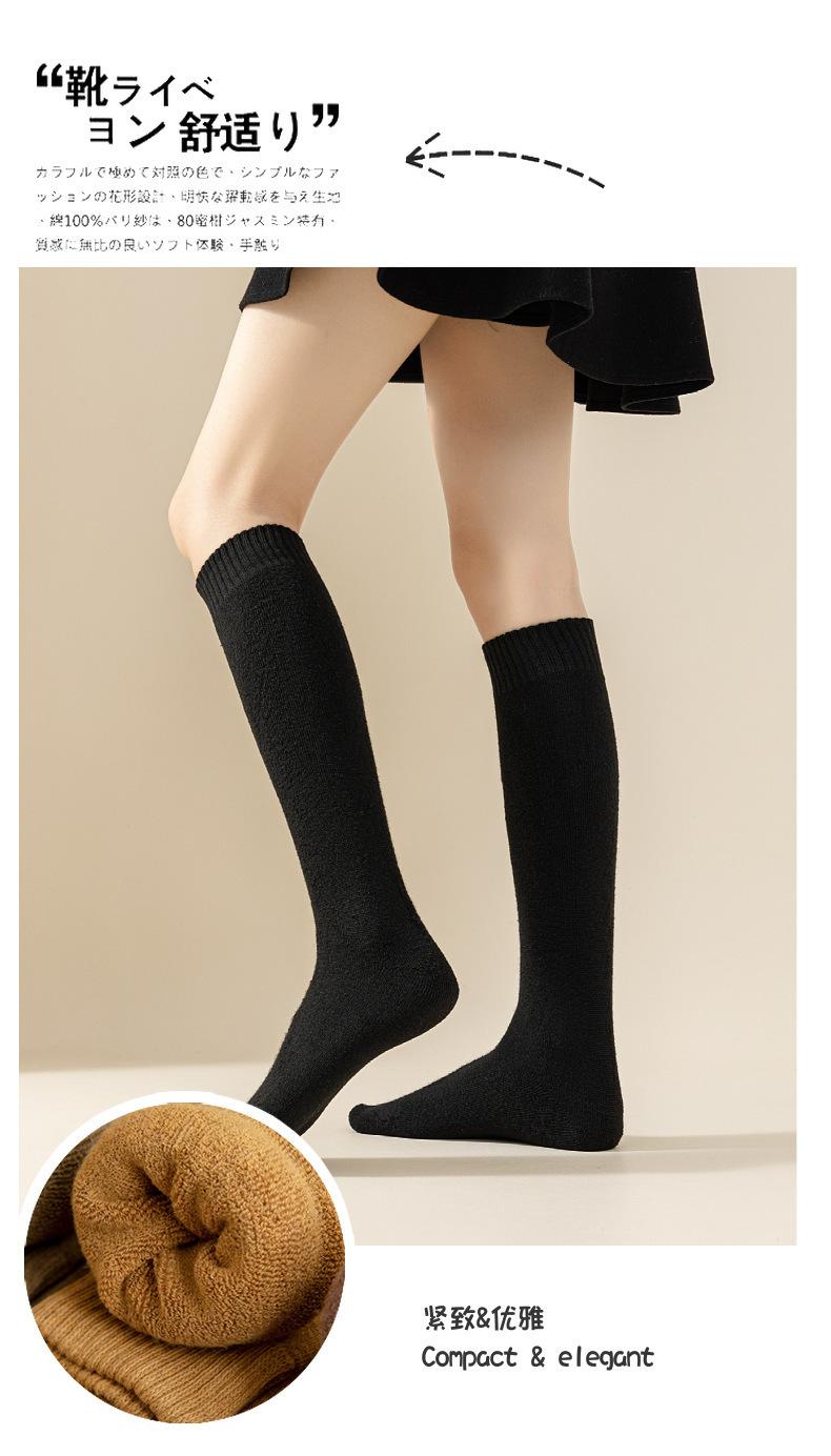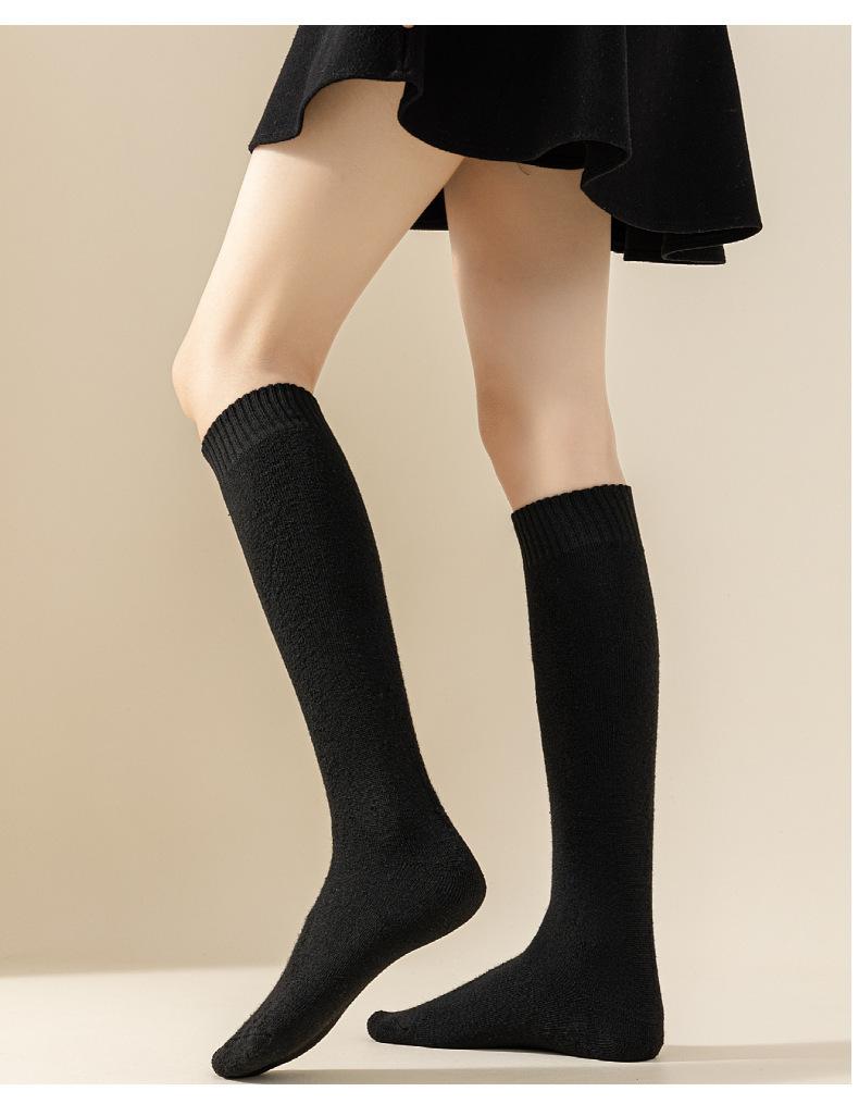 Meias femininas de atacado estilo outono e inverno forradas com lã grossas felpudas meias de bezerro quentes de cano alto modeladoras meias acima do joelho