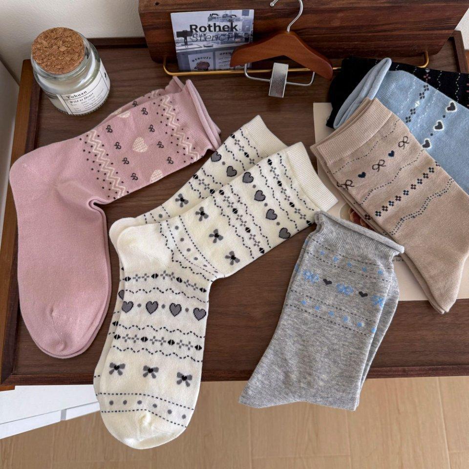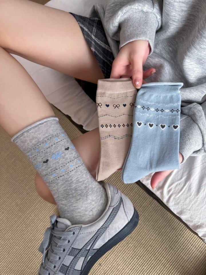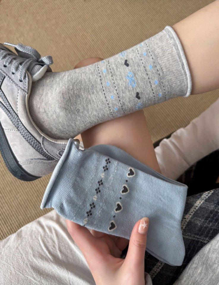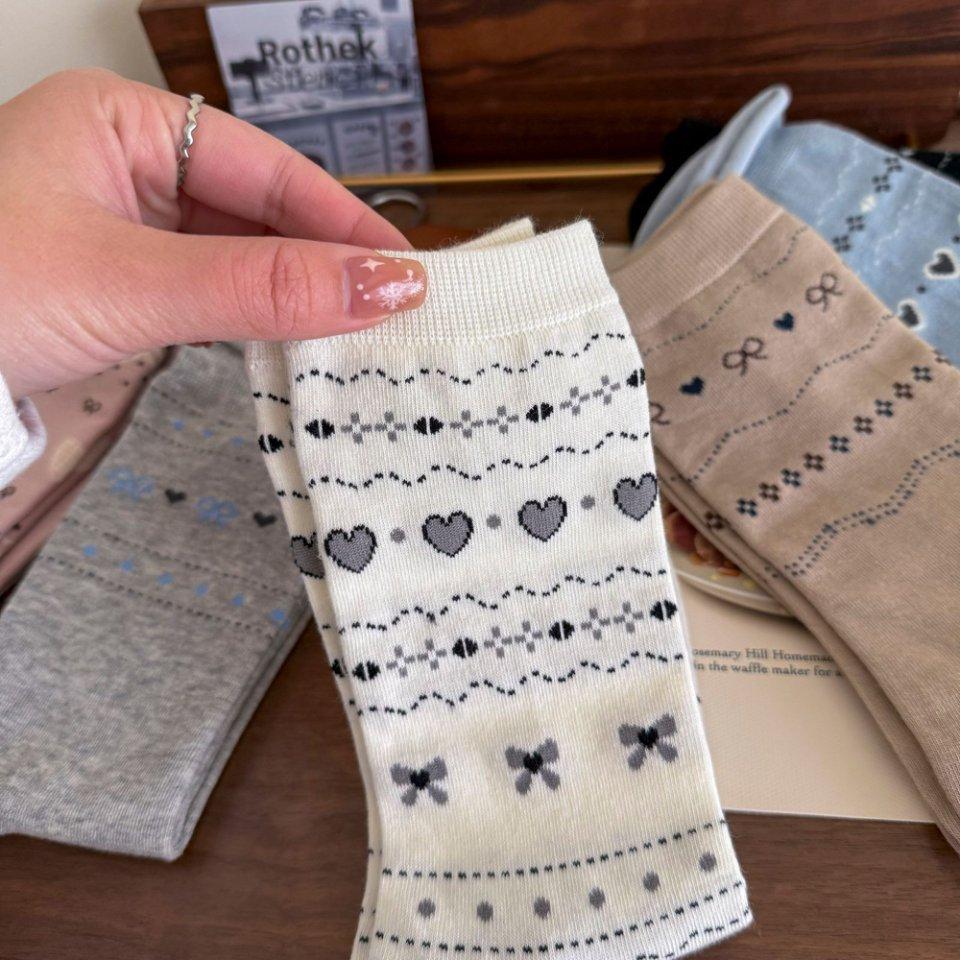 Meias cinza femininas estilo coreano estilo academia doce pequeno amor meias de comprimento médio primavera e outono uso externo estilo japonês meias fofas de estudante