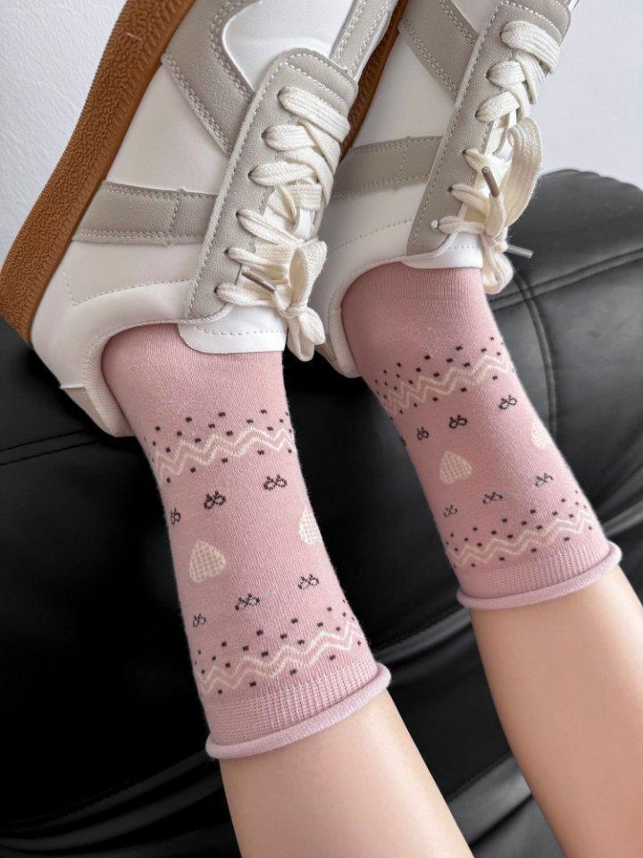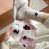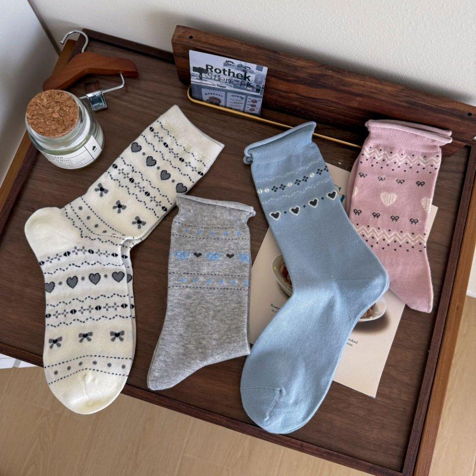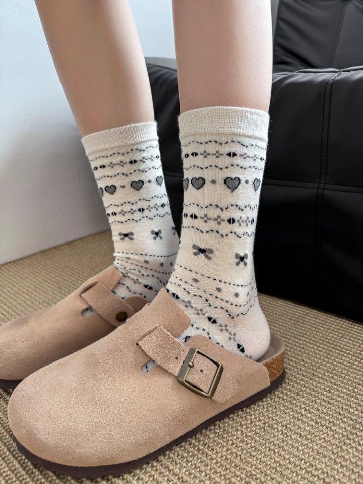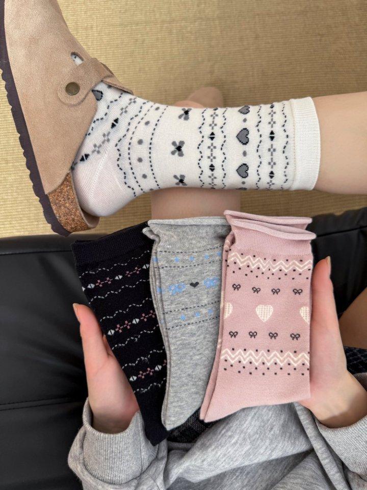 Meias cinza femininas estilo coreano estilo academia doce pequeno amor meias de comprimento médio primavera e outono uso externo estilo japonês meias fofas de estudante
