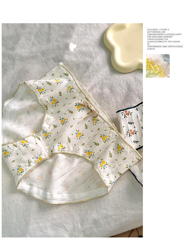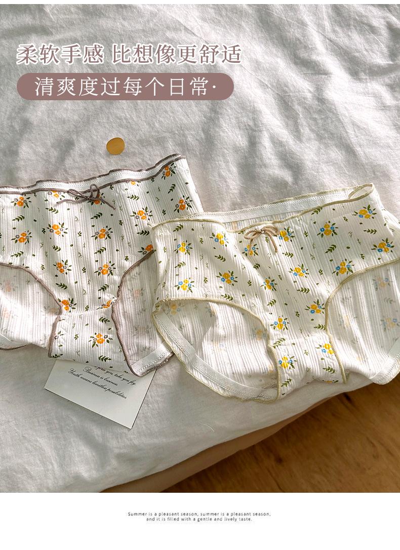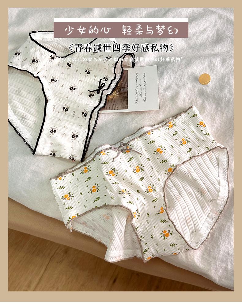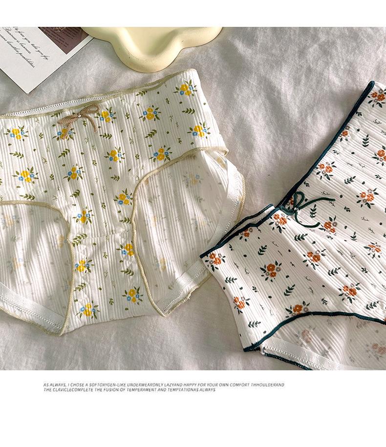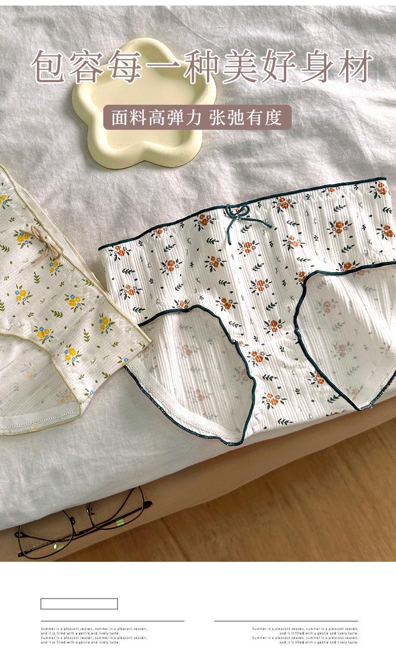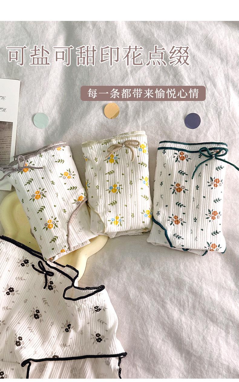 Calcinhas Femininas Algodão Puro Algodão Virilha Estudante Laço Floral Pequeno Sexy Branco Cintura Média Respirável Calcinhas Triângulo Femininas