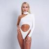 Novo Macacão Feminino Sexy Justo Ombro a Ombro Europeu e Americano Manga Longa Estilo Pérola Estampa de Leopardo TG0023