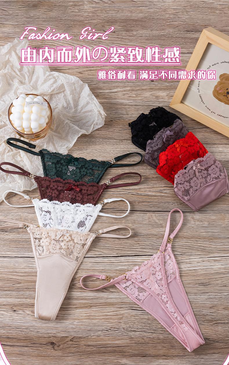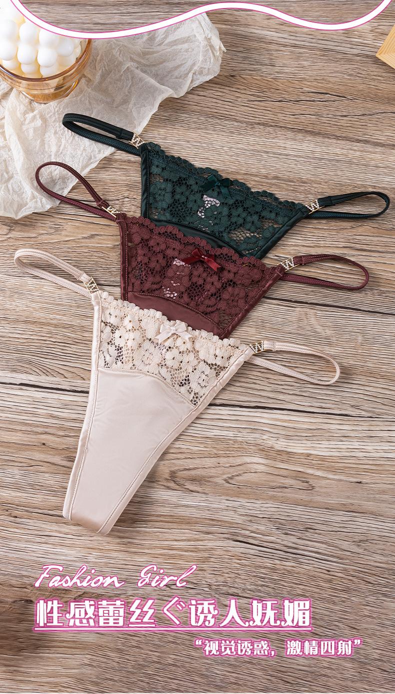 Calcinha T de Renda para Comércio Exterior Transfronteiriço para Mulheres com Alças Finas, Lingerie Sexy Vazada para Mulheres, Calcinha Fio Dental Sexy de Cintura Baixa Estilo Pura Luxúria para Mulheres