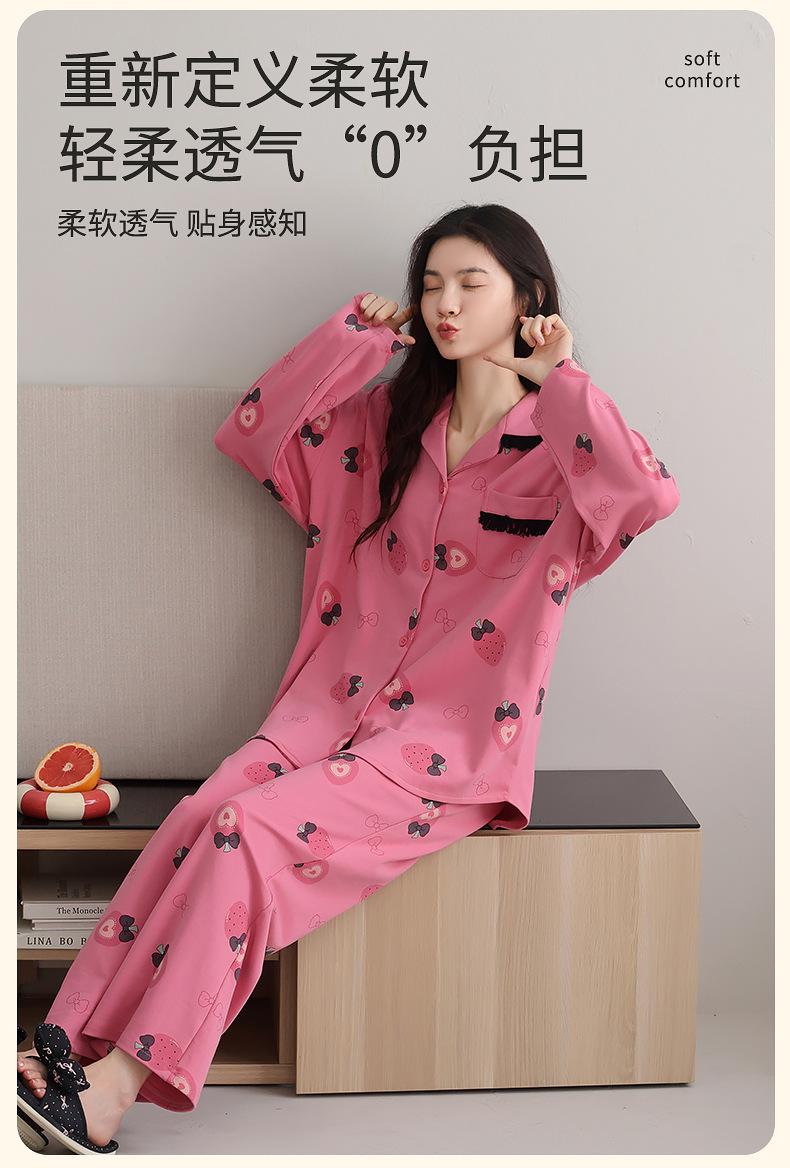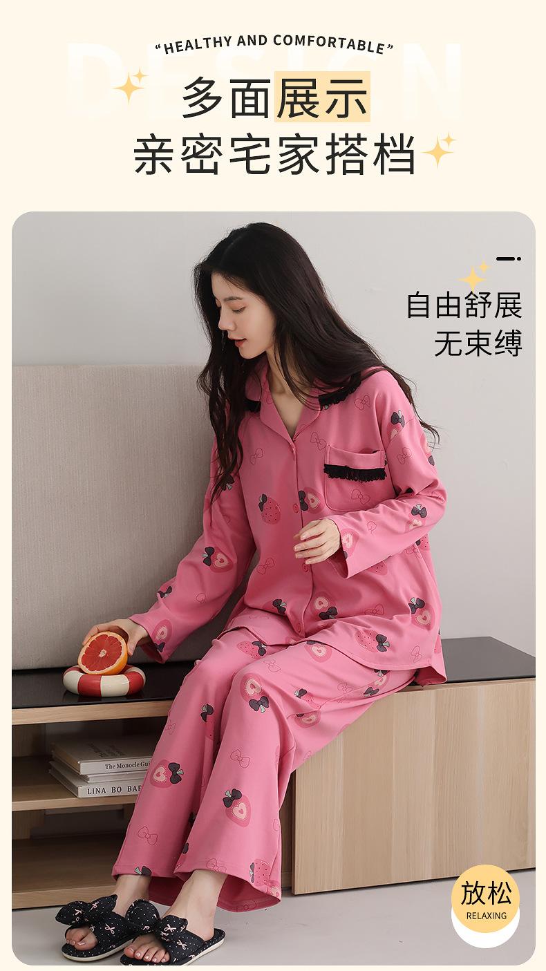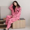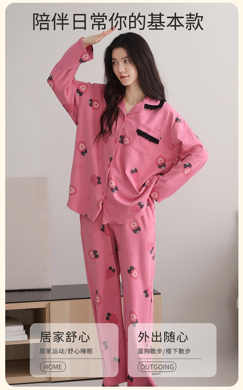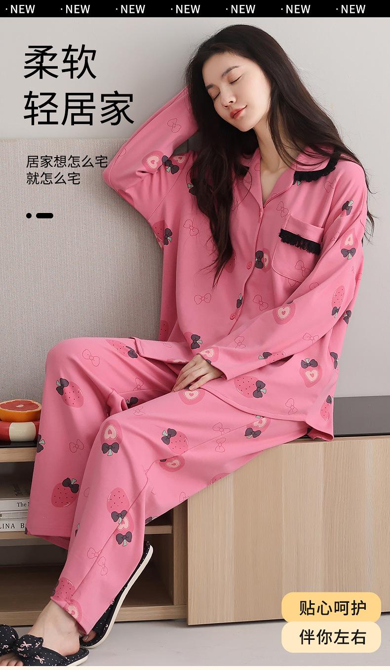 Pijama Feminino Novo 2025 Primavera Outono Algodão Puro Manga Longa Calça Comprida Casual Simples Pode Ser Usado Fora Conjunto Roupa de Casa Feminino