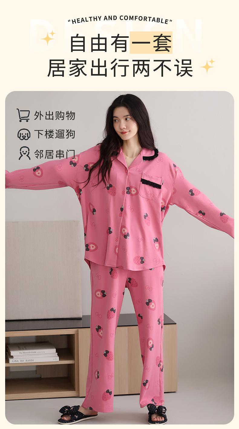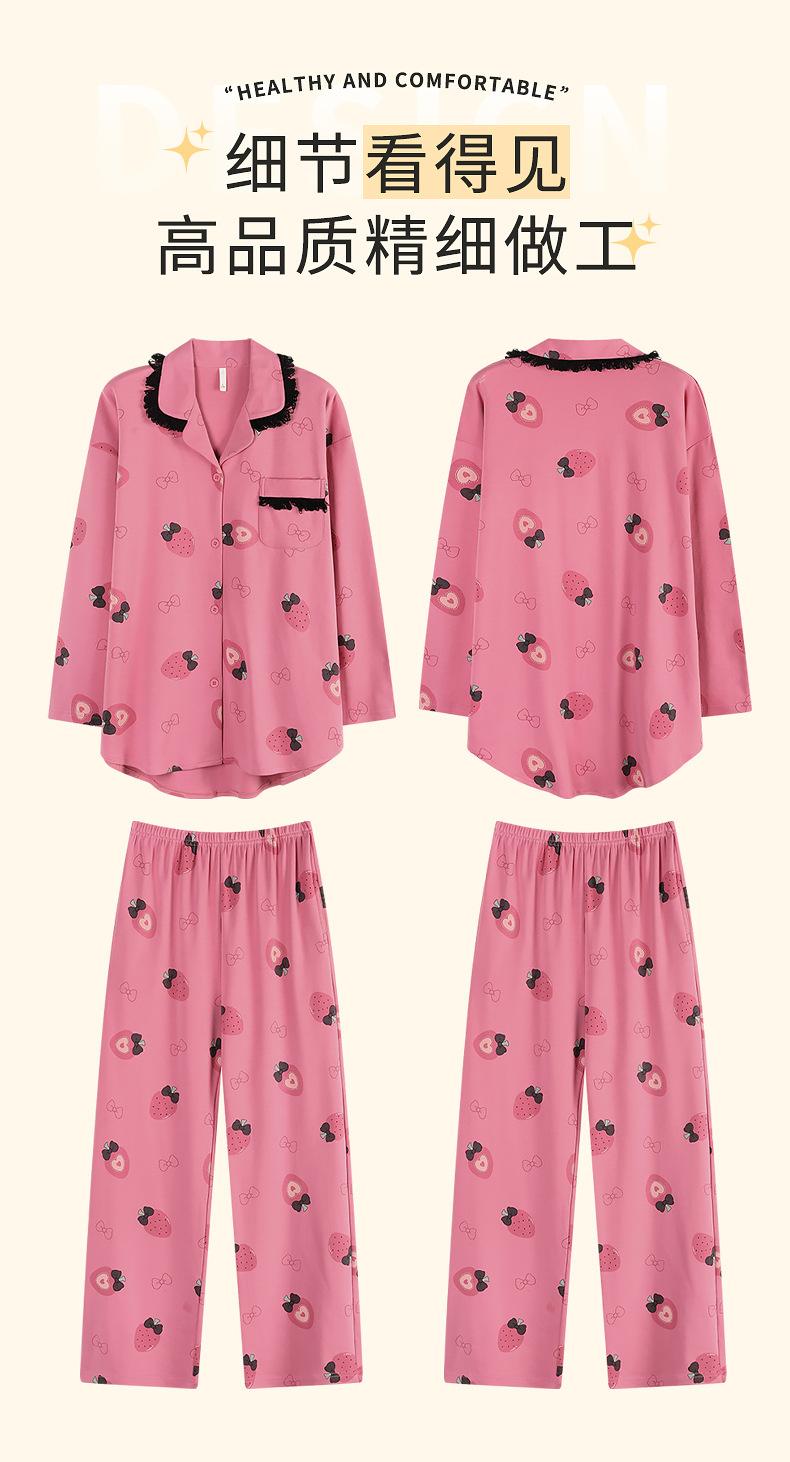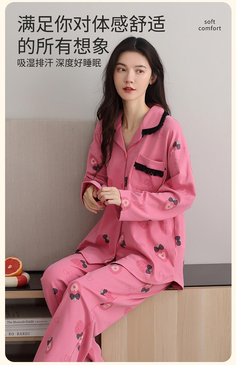 Pijama Feminino Novo 2025 Primavera Outono Algodão Puro Manga Longa Calça Comprida Casual Simples Pode Ser Usado Fora Conjunto Roupa de Casa Feminino