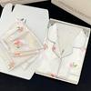 O Conjunto de Roupa de Casa Listrado de Manga Longa de Seda Gelo de Primavera e Outono Feminino de Alta Qualidade de Yu Zhaolin é Confortável e Casual